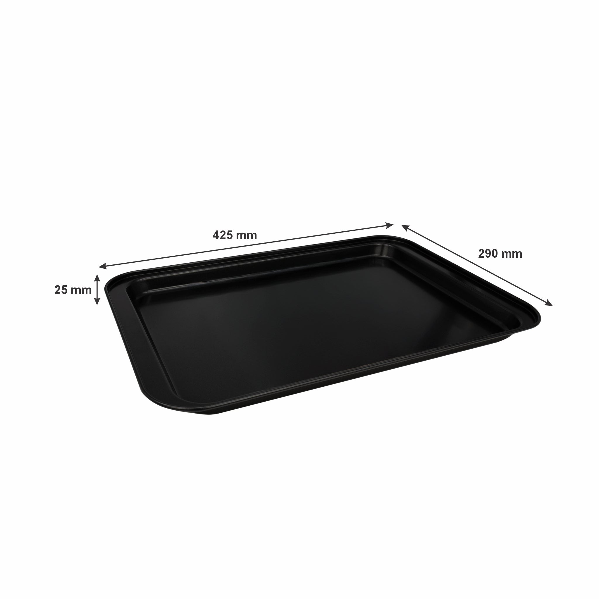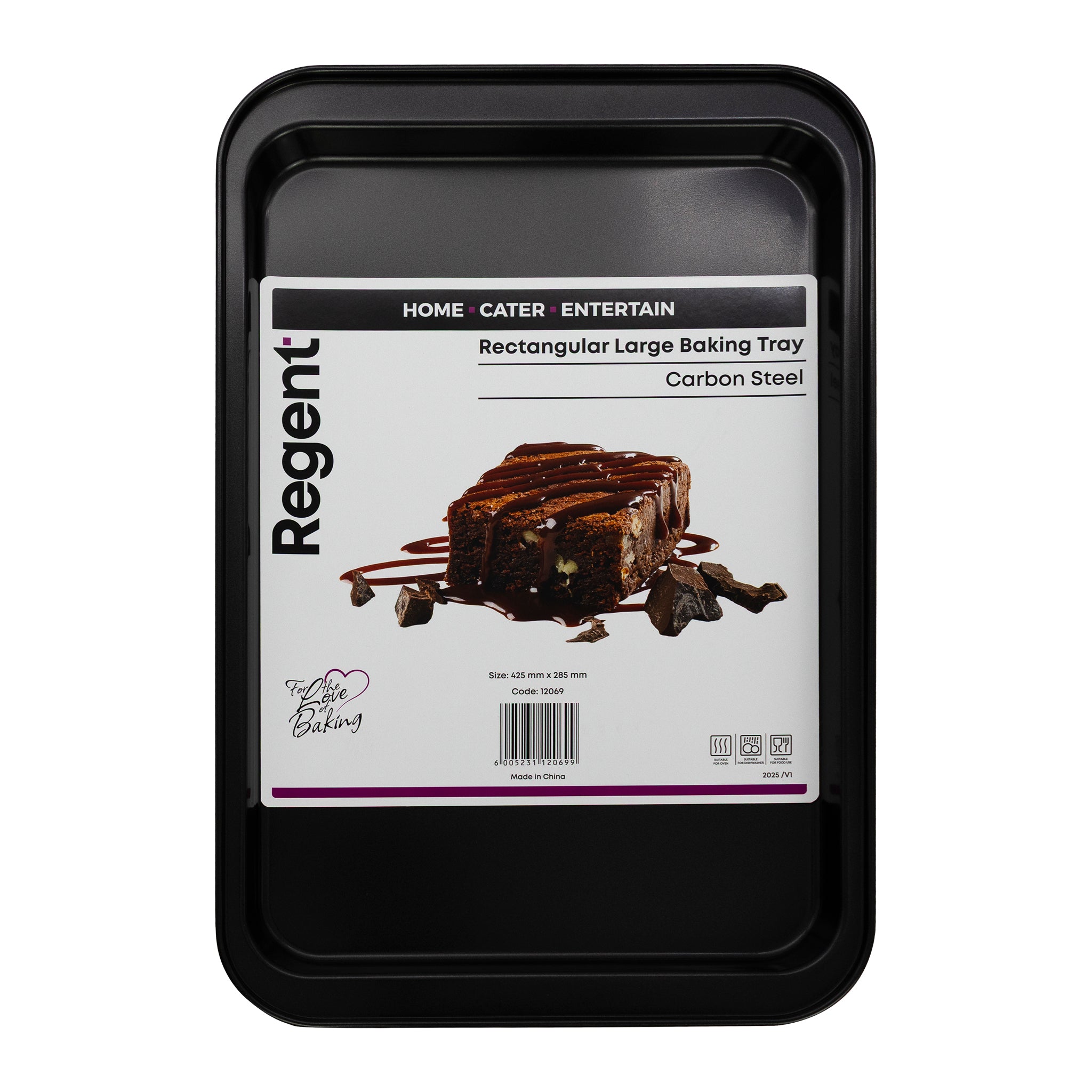 The versatile REGENT RECTANGULAR BAKING TRAY elevates your culinary and baking antics by offering generous surface area while maintaining elegant proportions. Made from carbon steel, the non stick surface ensures easy release of delicate pastries and sophisticated confections, preserving their artistic integrity. The engineered heat distribution eliminates temperature inconsistencies, allowing for nuanced browning and textural development. The discreet yet substantial rim provides stability without compromising aesthetic appeal, while the premium-grade materials resist warping even under the demands high temperature artisanal baking. This versatile piece transitions seamlessly from savory to sweet applications, making it an indispensable addition to the discerning baker's collection.