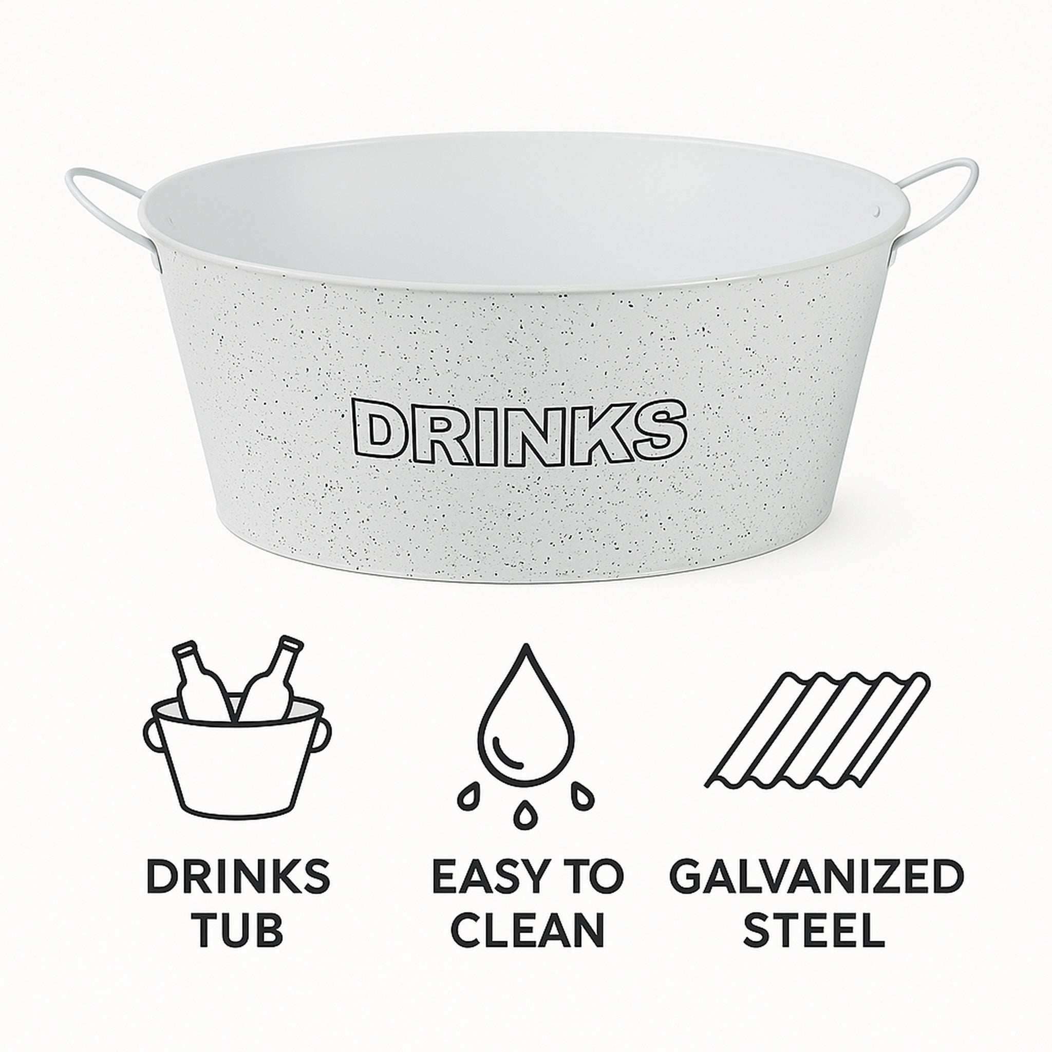 The Bar Butler Oval Wine Tub, with a 13-liter capacity, features sturdy handles and a stylish, modern white and mottled black design that adds a practical and playful touch to any gathering. Its spacious interior keeps multiple bottles chilled and easily accessible, making it perfect for parties, picnics, or casual entertaining. Lightweight and durable, this wine tub combines functionality with fun, ensuring your drinks stay cool while enhancing your event’s vibe.