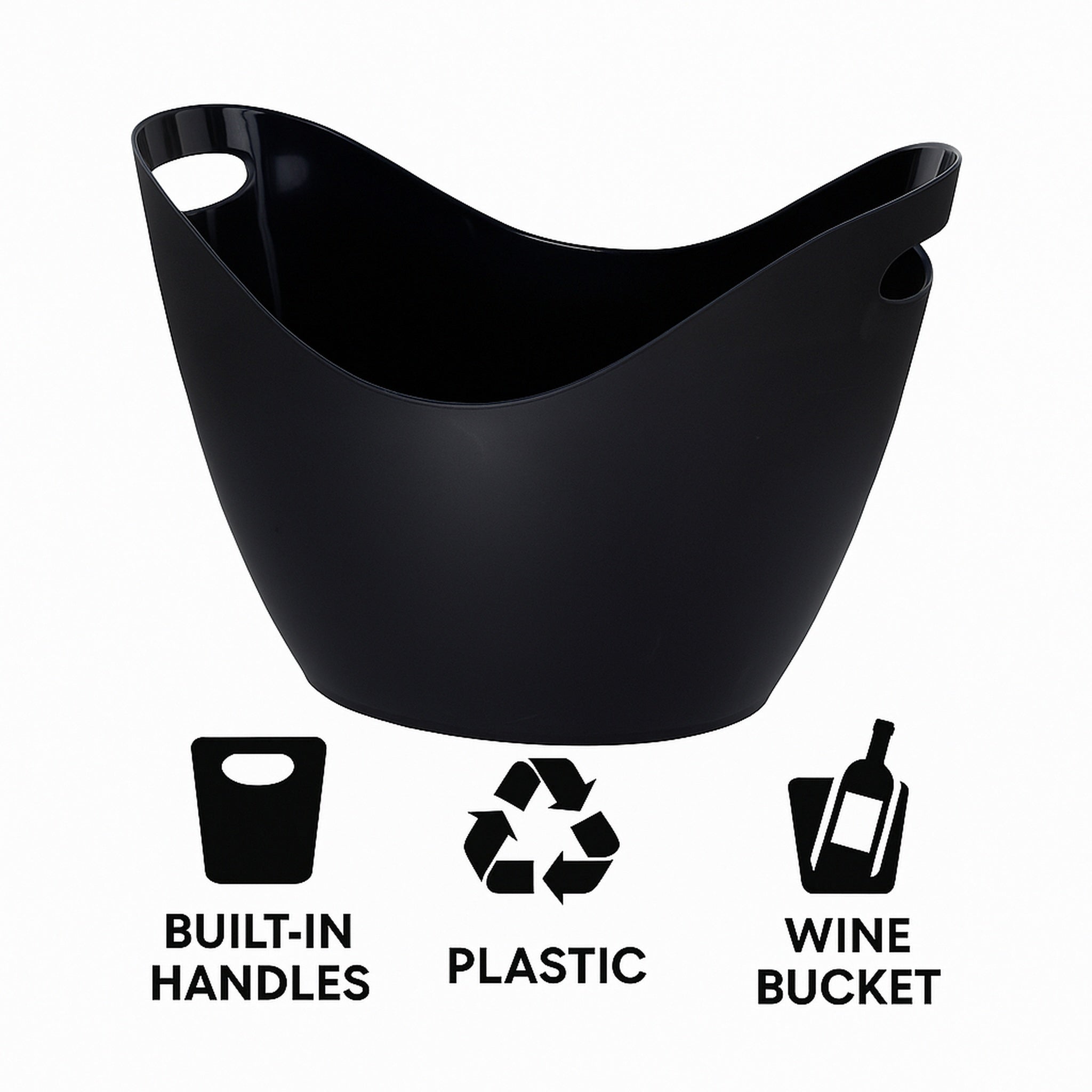 This great, big, oval 7t black plastic ice bucket is a practical and stylish choice for keeping beverages chilled for longer or to store ice. This versatile ice buckets is designed to hold multiple bottles at once, with room for ice to chill them simultaneously.