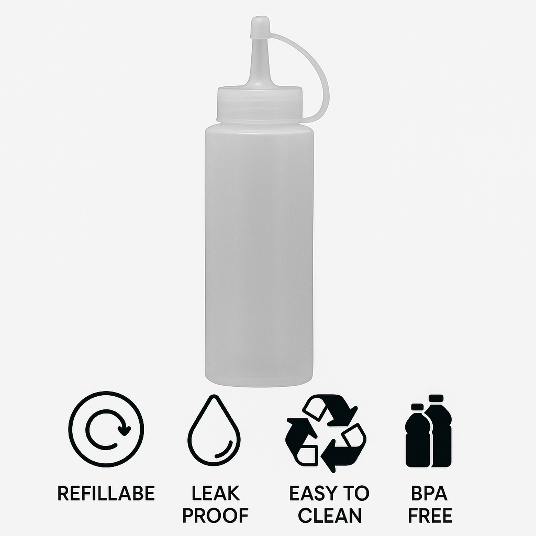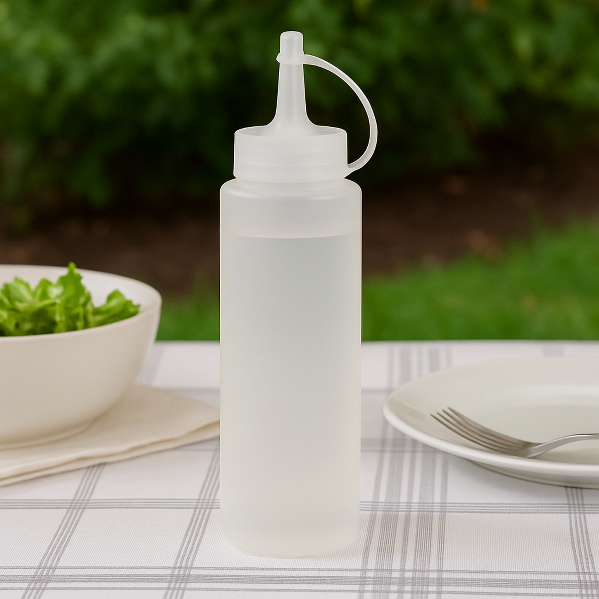 Perfect for professional kitchens and home chefs alike, these REGENT ROUND PLASTIC SAUCE BOTTLES come in a convenient 6pack to handle all your condiment needs. The precision nozzle ensures accurate dispensing, giving you complete control over sauce application while reducing waste. Each 250ml bottle offers the ideal size for daily service without frequent refills. The durable white plastic construction is both lightweight and squeeze-resistant, maintaining its shape through repeated use. Streamline your food preparation and presentation with these essential tools that enhance efficiency, consistency, and professional-looking plating.