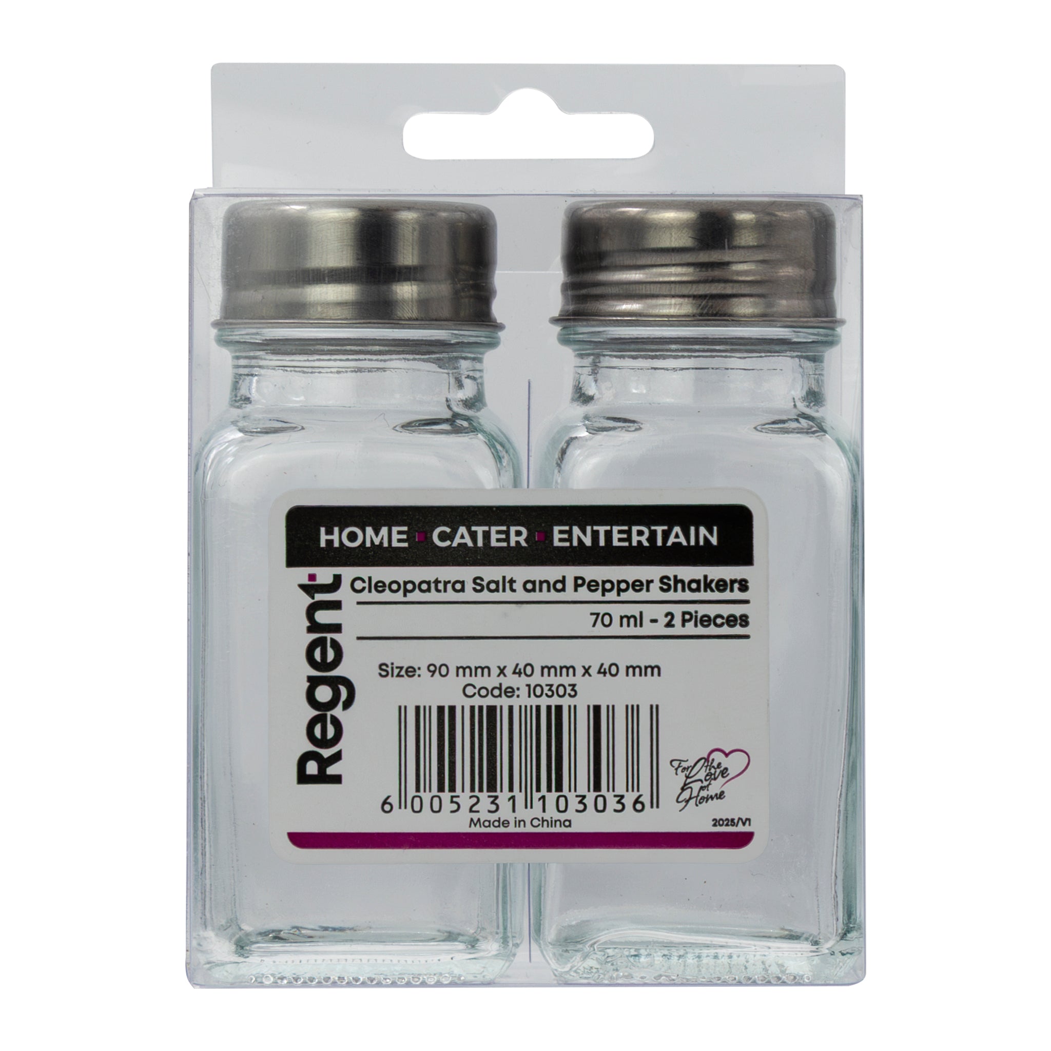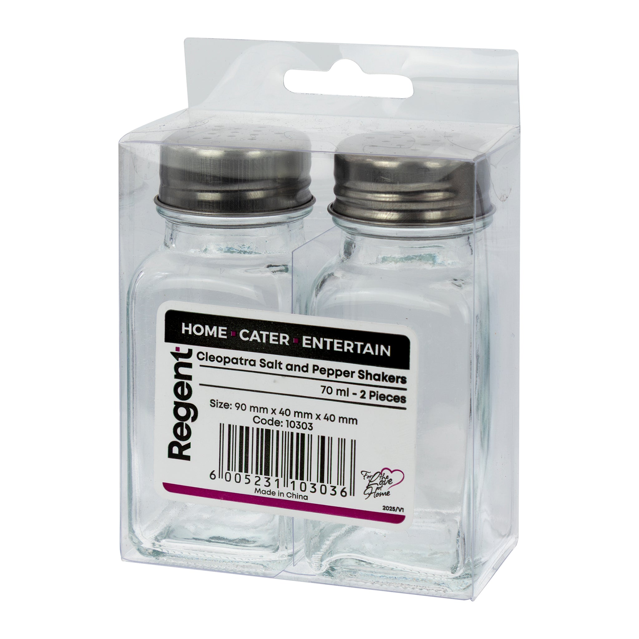 Elevate your dining experience with the Regent Cleopatra Salt & Pepper Glass Shakers. Crafted with clear glass and a convenient 70ml capacity, these shakers offer precise seasoning control for every meal. Their sleek design fits perfectly on any table, making them ideal for both home use and bulk catering. Durable and easy to refill, they bring style and functionality together to enhance your culinary presentation.