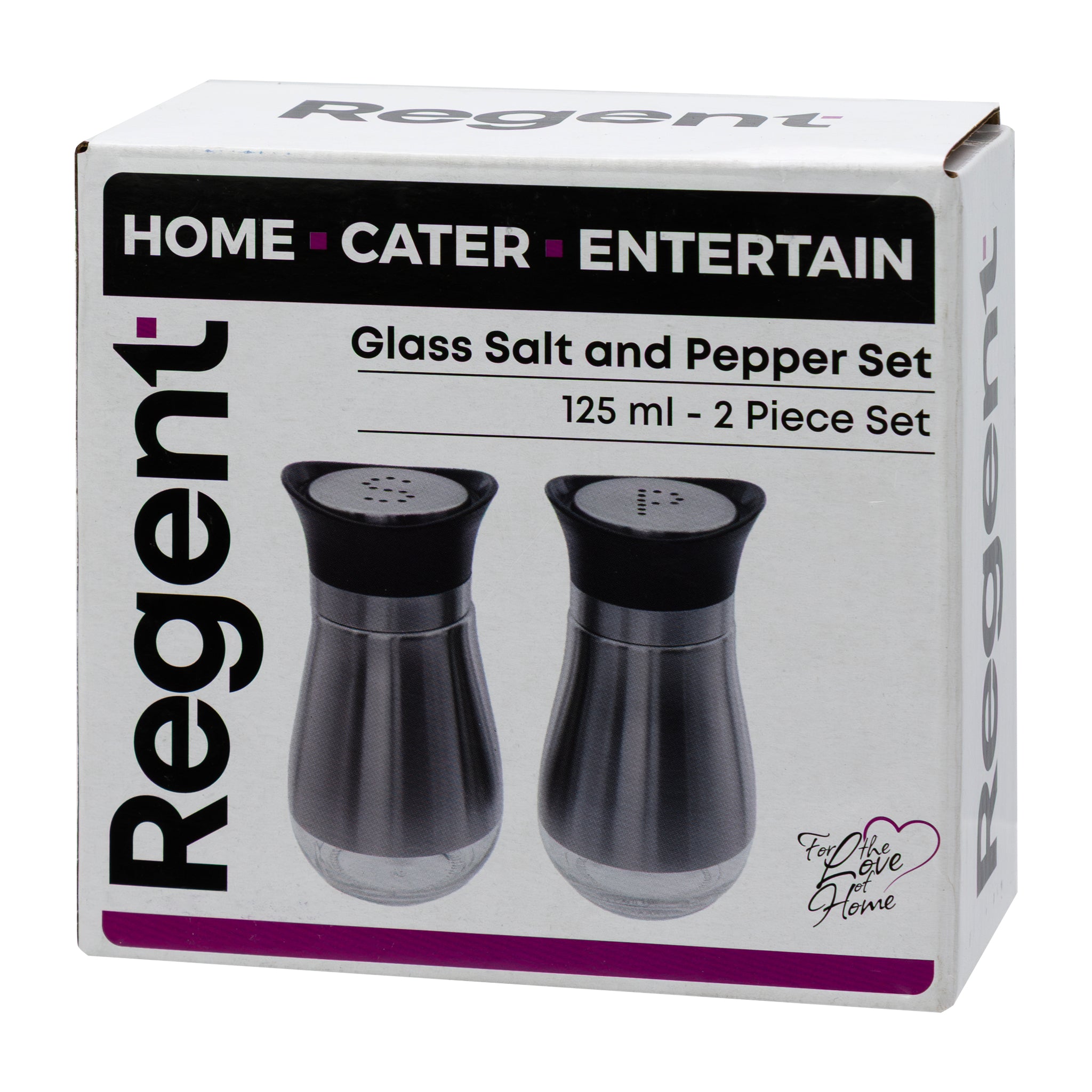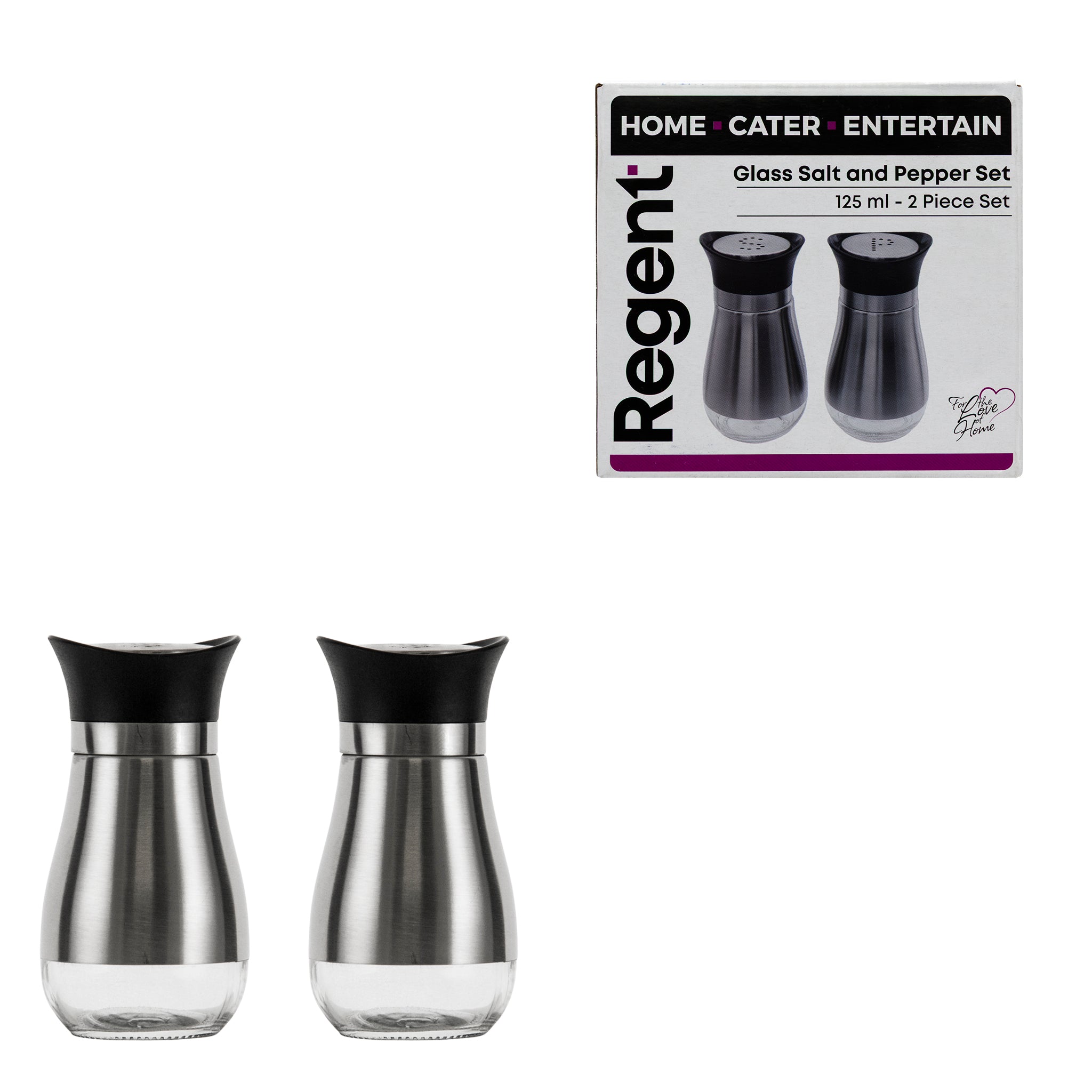 Each shaker has a handsome black plastic top cover with a stainless steel cap perforated with a 'S' and 'P' which enhances the modern design of the set. Each salt and pepper shaker is 110mm tall and holds about 125ml.