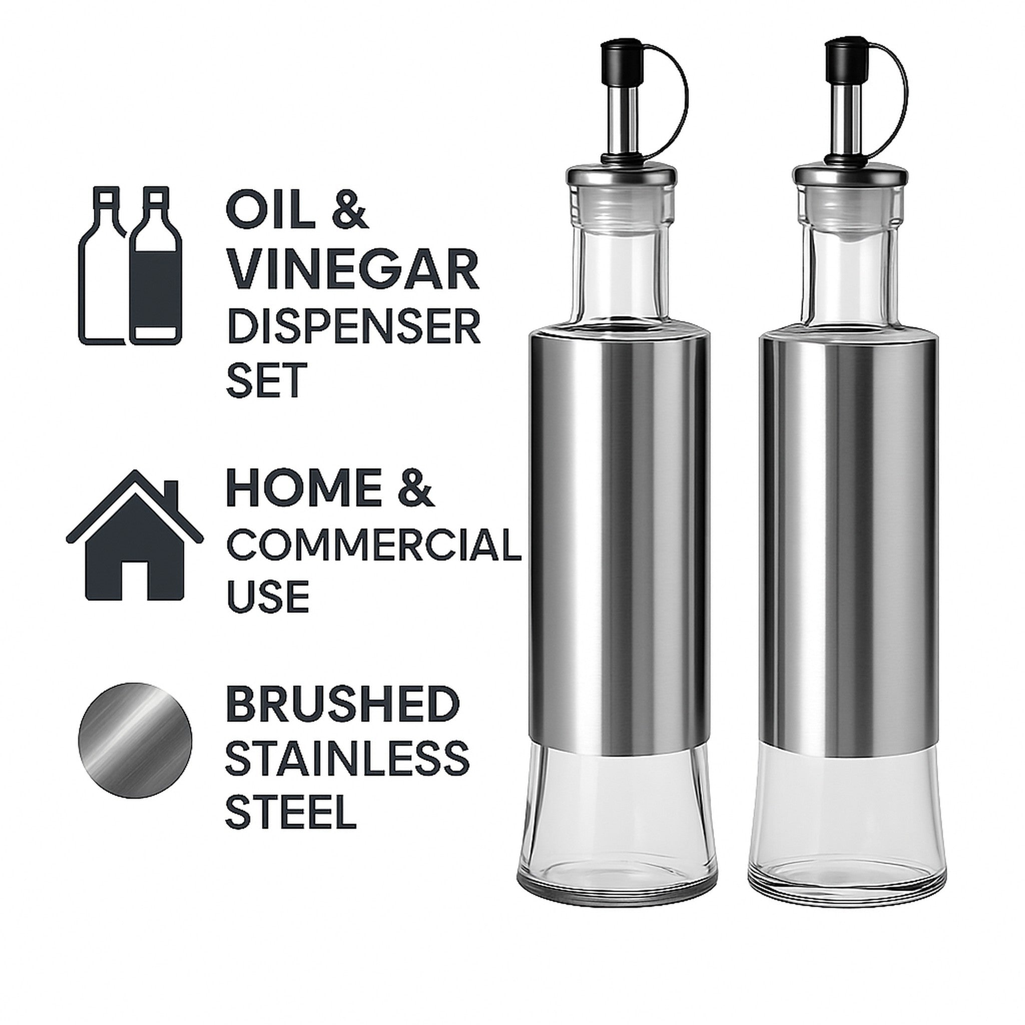 This classical oil and vinegar dispenser set is perfect for various locations including kitchen countertops, restaurants, and pantries.