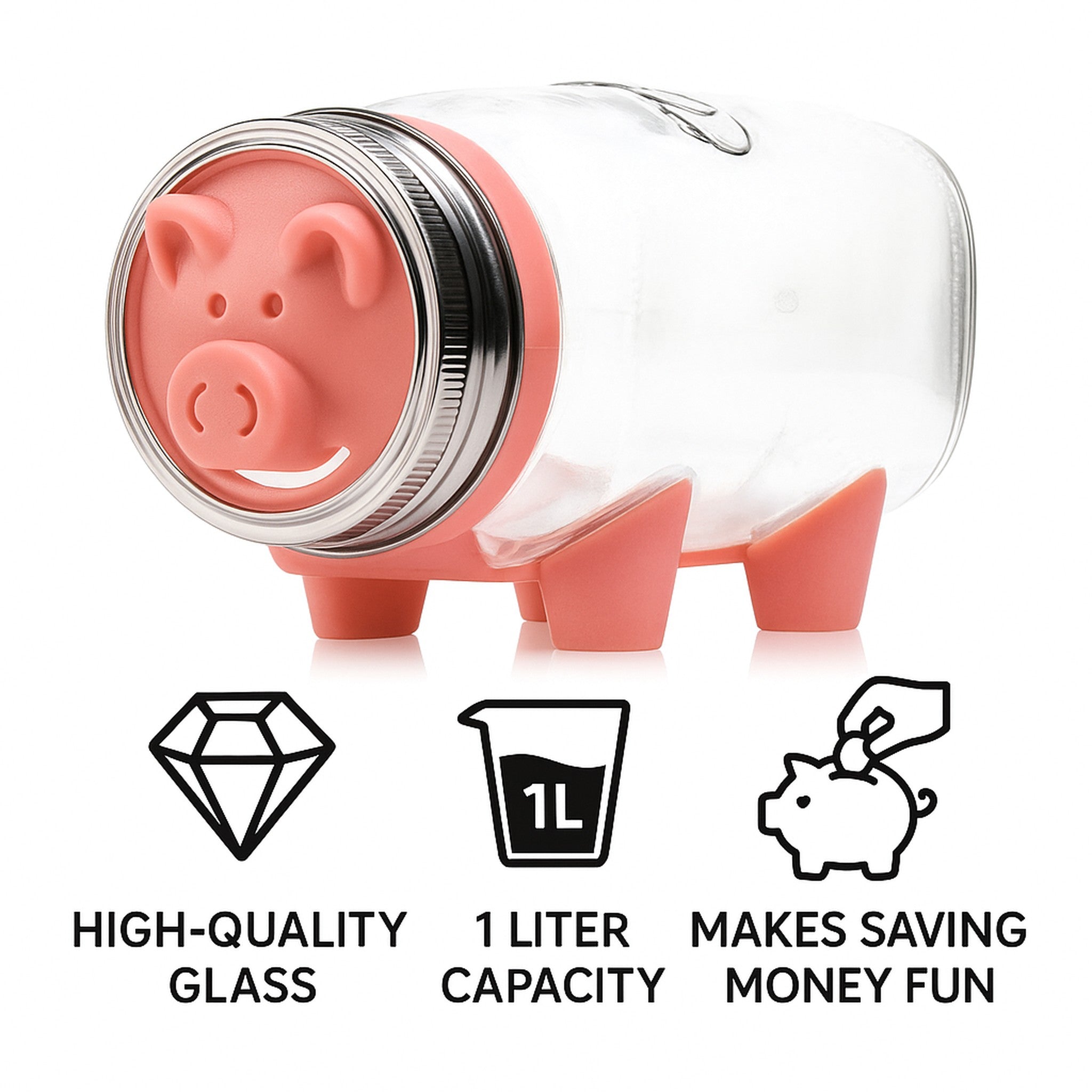 Make saving money a fun, adventure with the Consol Piggy Bank in bright pink. The roomy 1lt size is perfect for collecting and saving coins. The piggy bank is made from sturdy, high-quality glass and plastic making it both lightweight and durable.