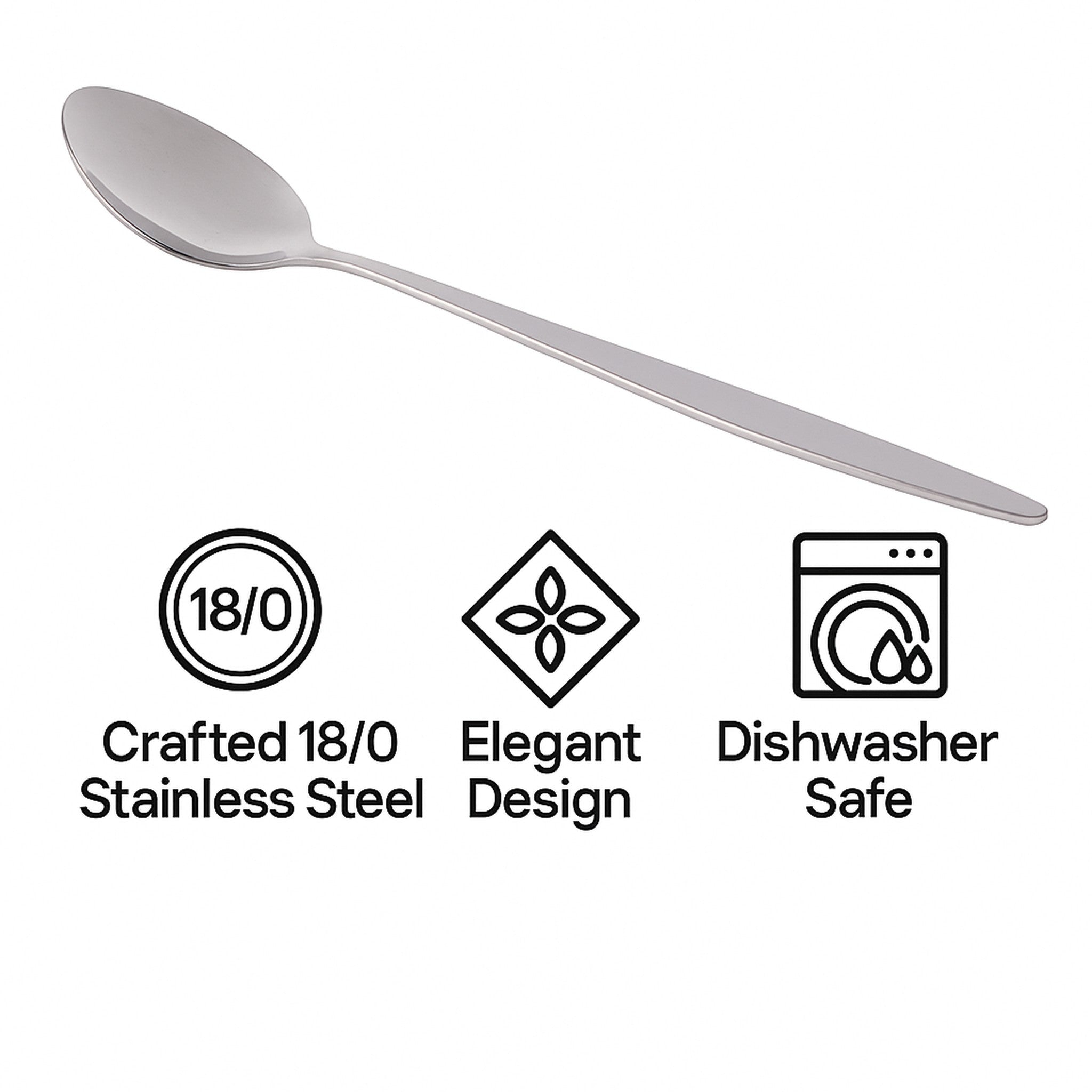 The design of this dessert spoon 4 pack is simple and timeless, and it is made of non-toxic and nickel free rust resistant catering quality stainless steel.