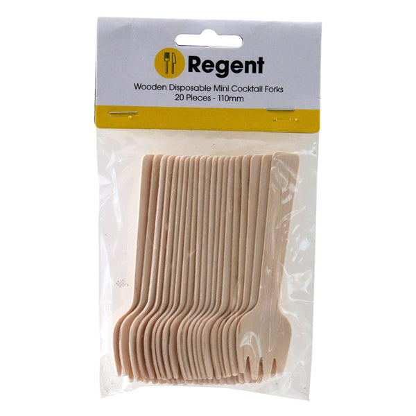 REGENT DISPOSABLE BAMBOO MINI COCKTAIL FORKS 20PK, 110MM