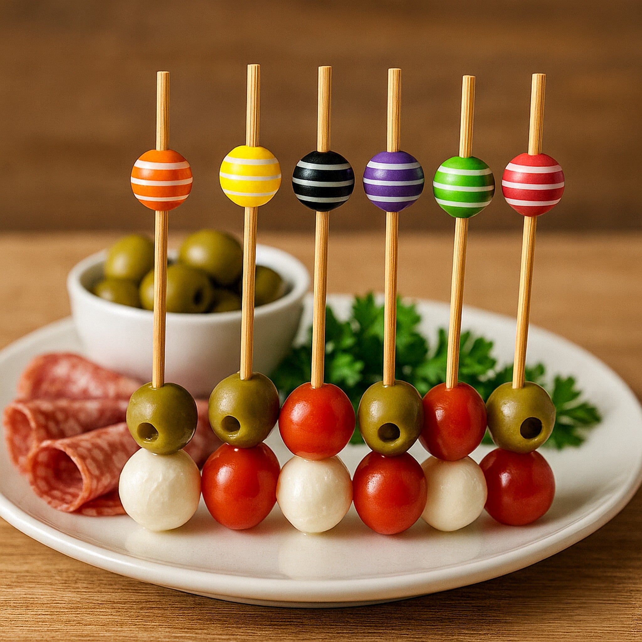 Expertly crafted from renewable bamboo, these bamboo picks are an eco friendly and sustainable choice for all your entertaining needs. Add a touch of elegance to any culinary presentation. Perfect for appetizers, cocktails, and desserts.