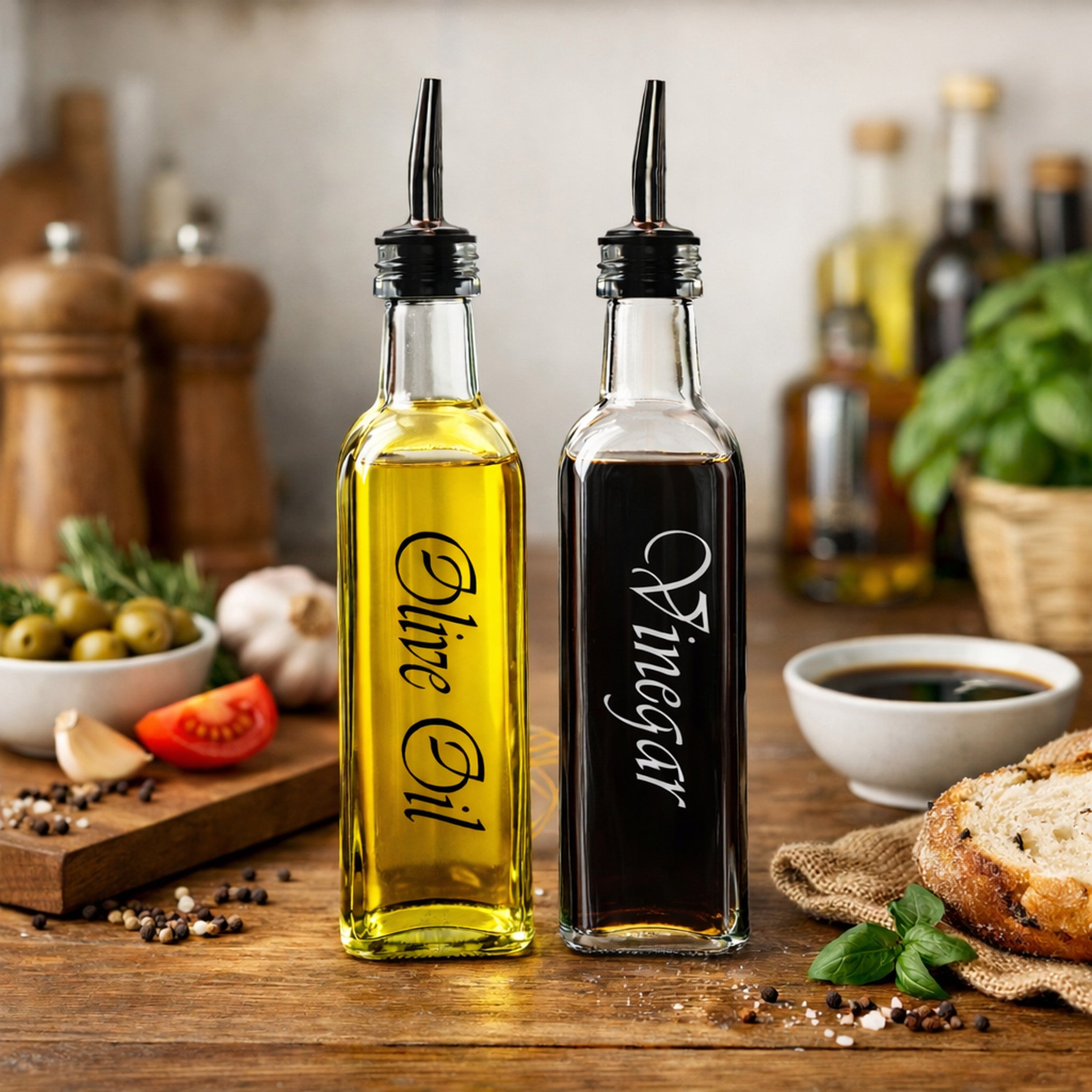 These premium REGENT SQUARE BOTTLES feature precision engineered pourers that deliver controlled dispensing of olive oil and vinegar, eliminating waste and ensuring consistent application. The slender profile 500ml of the glass pourers optimizes table space while providing adequate volume for regular use. The integrated GOLD labeling clearly distinguishes contents, preventing serving errors during busy service periods. Crafted from high quality glass, these bottles showcase the color and clarity of contents while resisting odour absorption and flavour transfer. The specialized pourer design prevents drips, wastage and contamination, maintaining ingredient integrity while enhancing presentation for both professional and home dining environments.