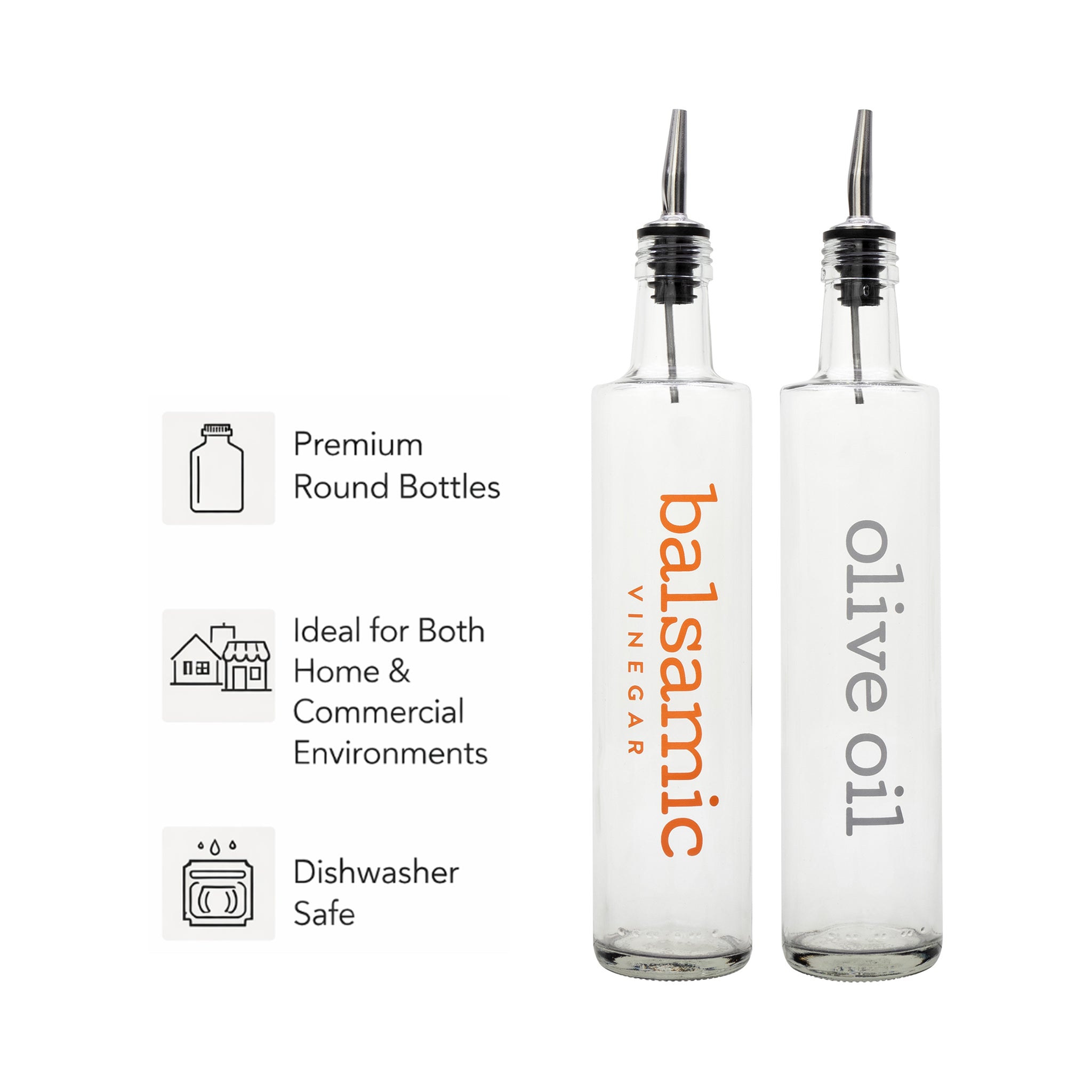 REGENT ROUND GLASS PRINTED OLIVE OIL & BALSAMIC BOTTLES WITH POURERS EA, 500ML