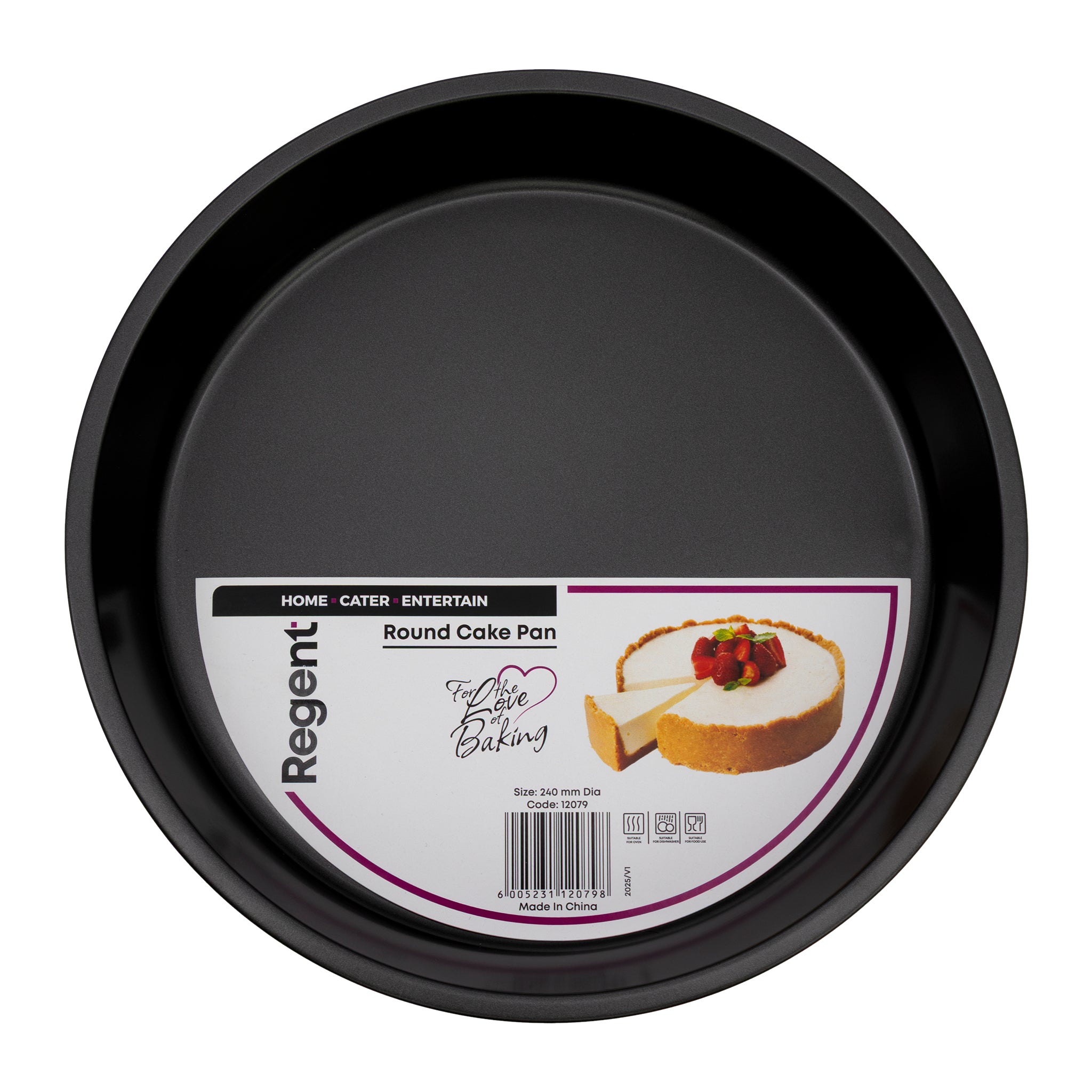The Regent Bakeware Round Cake Pan is manufactured from quality coated steel. The sturdy construction ensures even heat distribution, ensuring your cakes bake uniformly with a perfect rise. Its non-stick surface allows for easy release and quick cleanup, saving you time in the kitchen. Ideal for baking a variety of cakes, this pan delivers consistent, professional-quality results every time. Durable and reliable, it’s a must have for both home bakers and catering professionals.