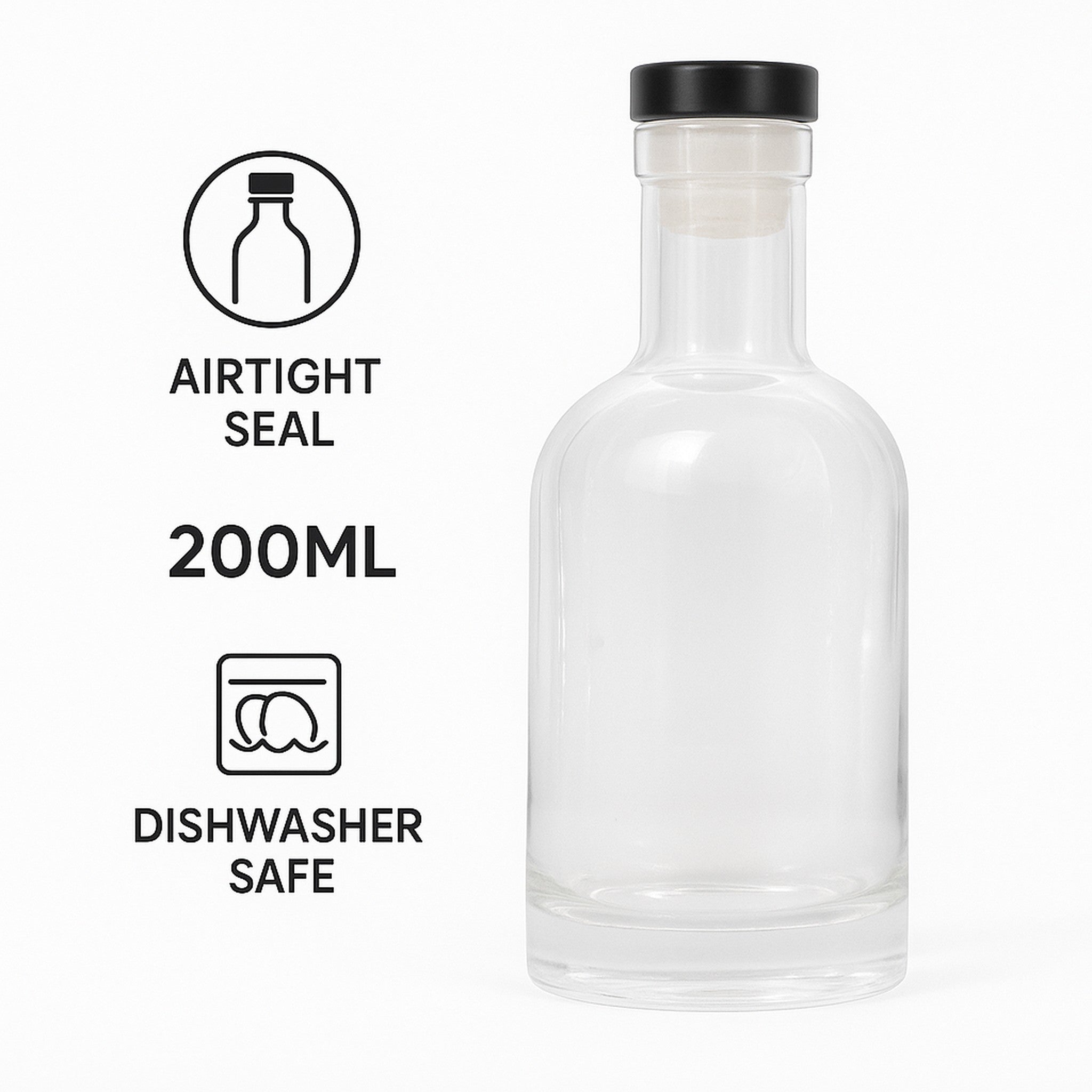 REGENT GLASS GIN BOTTLE WITH BLACK STOPPER, 200ML
