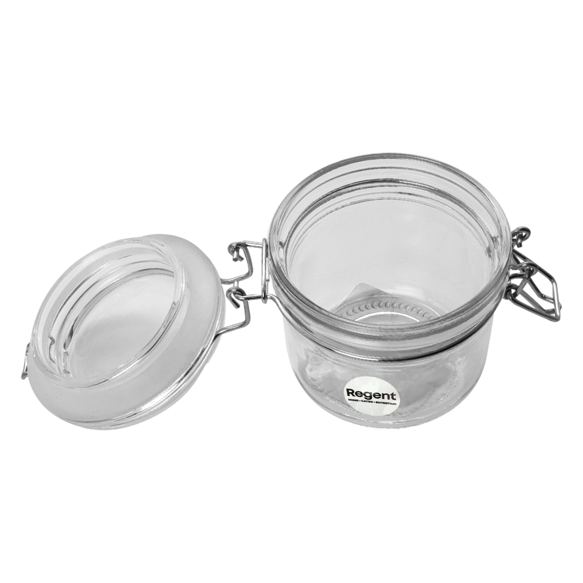 The Regent Hermetic Glass Canister features a 200ml capacity and a secure clip seal glass lid that ensures an airtight closure, preserving the freshness of contents. Crafted from clear glass, it allows easy identification of stored items. Ideal for storing spices, herbs, jams, sauces or any small pantry essentials. This classic canister combines durability with elegant design, making it a practical and stylish addition to any kitchen or countertop.