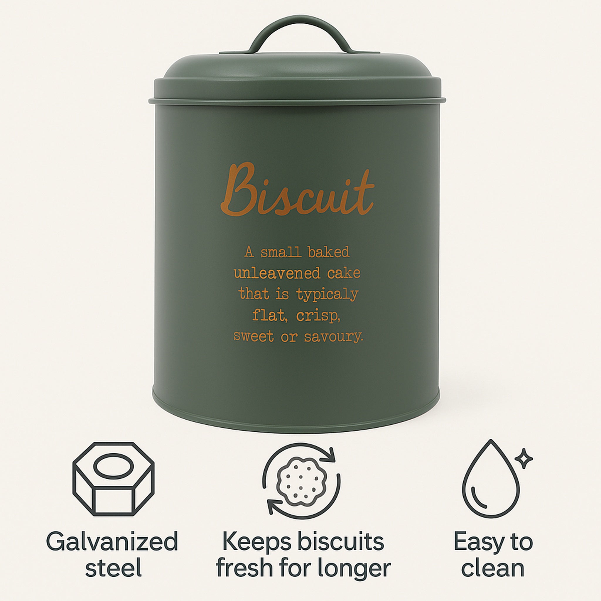 REGENT BISCUIT CANISTER GREEN WITH GOLD PRINT, 140MM DIA