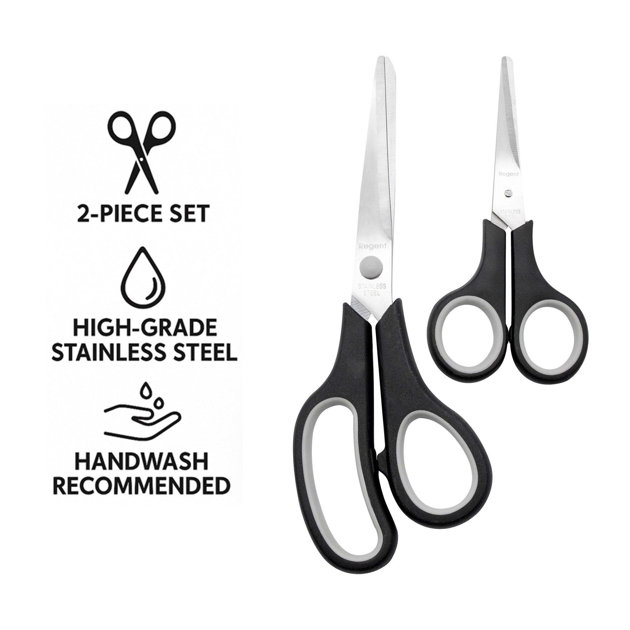 The handles have soft rubber inner circles or comfortable and great control. They can be used as household, office, craft or fabric scissors.