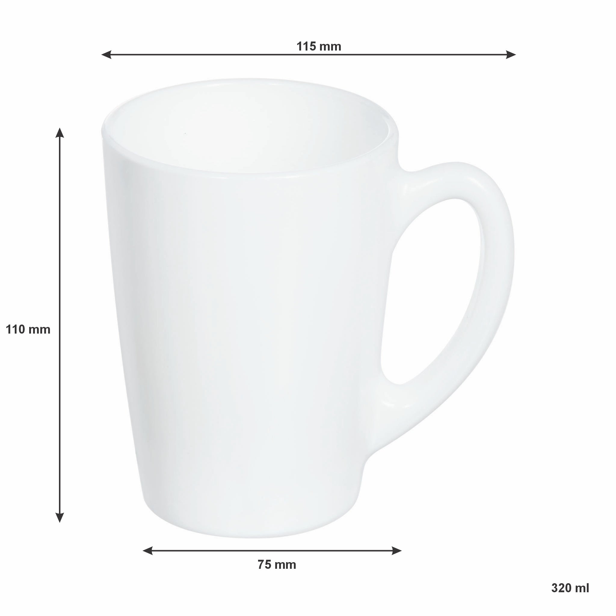 Manufactured from tempered opal glass, which is a type of strengthened glass that is very durable. It's known for its smooth, white, and opaque finish, giving it a clean and sophisticated appearance. The timeless look with a white finish, makes this mug versatile for any table setting, whether casual or formal.