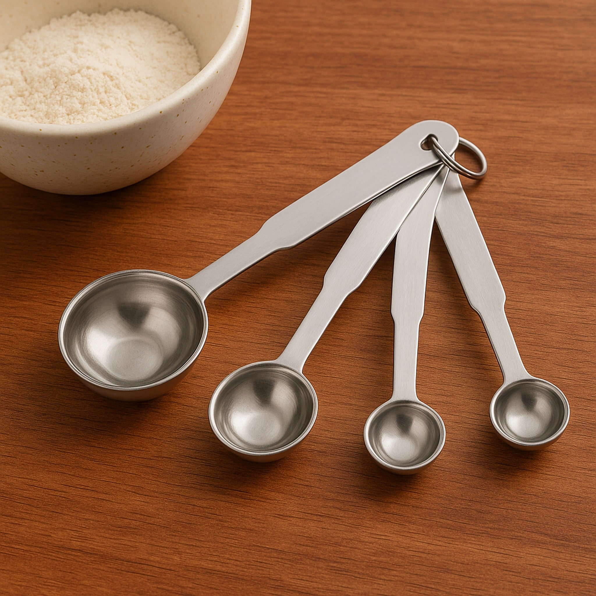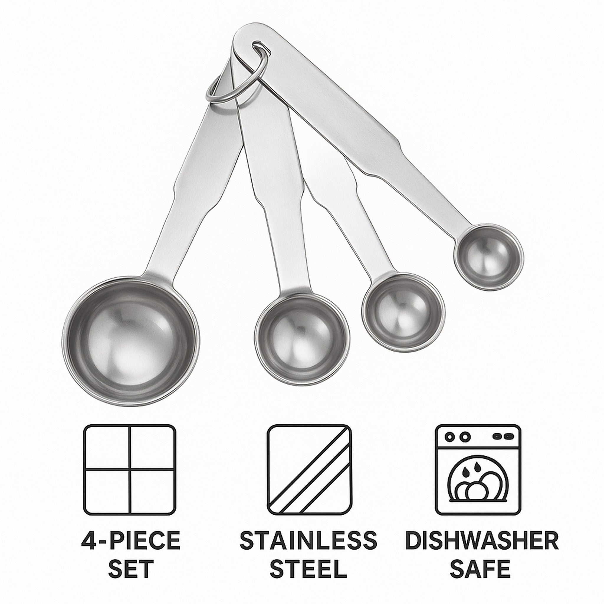 This Regent Bakeware Deluxe Measuring Spoons set includes four stainless steel spoons ranging from 1/4 teaspoon to 1 tablespoon. Crafted for durability and precision, these spoons ensure accurate measurements for perfect baking results every time. Their sleek stainless steel design resists rust and is easy to clean, making them a reliable addition to your kitchen tools. Compact and sturdy, they fit comfortably in your hand and nest together for convenient storage. Elevate your baking with this essential, long-lasting measuring set.