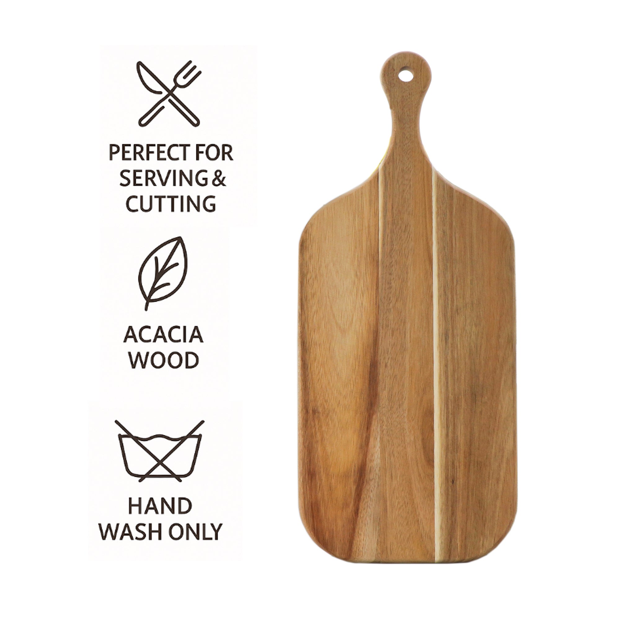 Acacia wood is forest grown, hardy, environmentally friendly and sustainable making it an ideal wood for carving, slicing or chopping fruits, vegetables and herbs and perfect for serving up anti-pasti, salads, breads, cheeses, cooked meats and more.