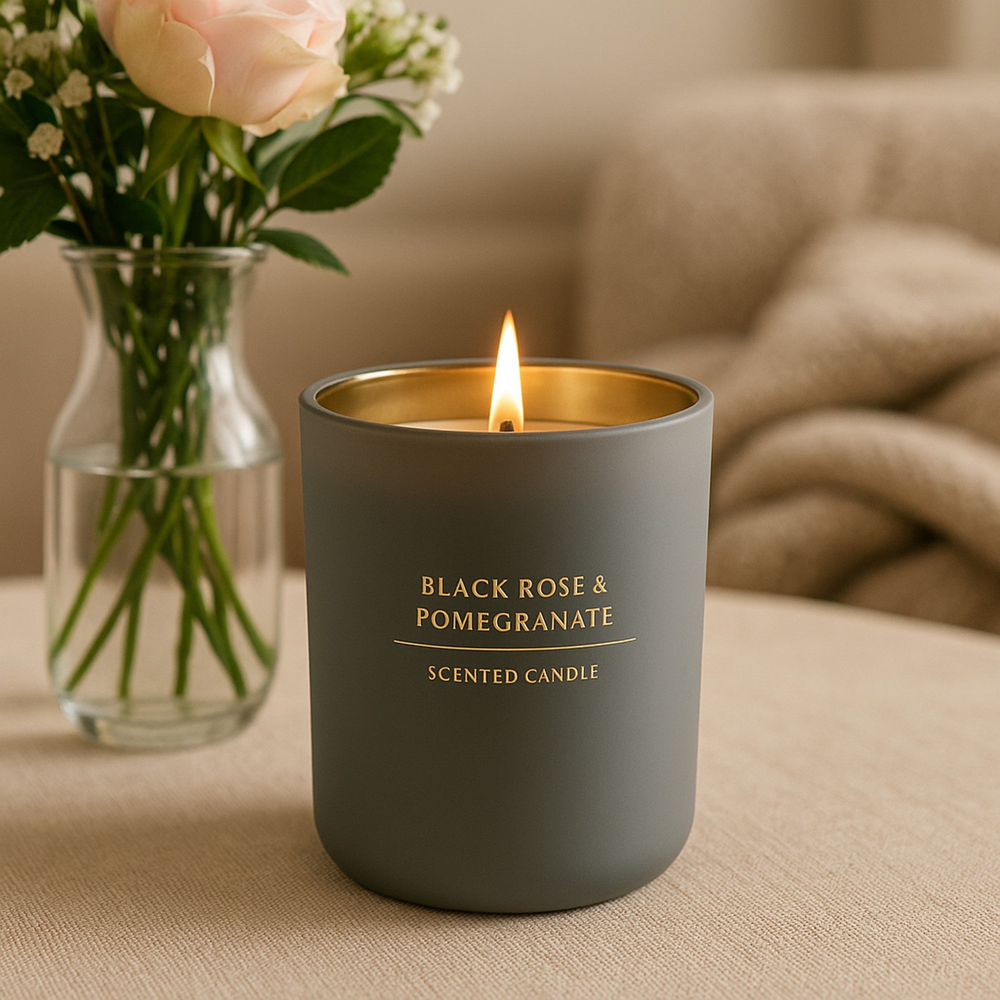 Spark joy with our adorably compact REGENT SCENTED CANDLE! This little 210gr mood maker comes in a chic grey jar that's just the right size (80x69mm) to sneak into any nook or cranny. The tantalizing black rose and pomegranate fragrance is like a party for your nose, sophisticated enough for grown-up spaces but fun enough to make you smile! Perfect for transforming your bathroom into a fancy spa, creating instant ambiance for impromptu dinner parties and romantic nights at home. The stylish container looks fabulous even when not lit, making it the perfect little sidekick for shelves, desks, or anywhere that needs a pop of personality!