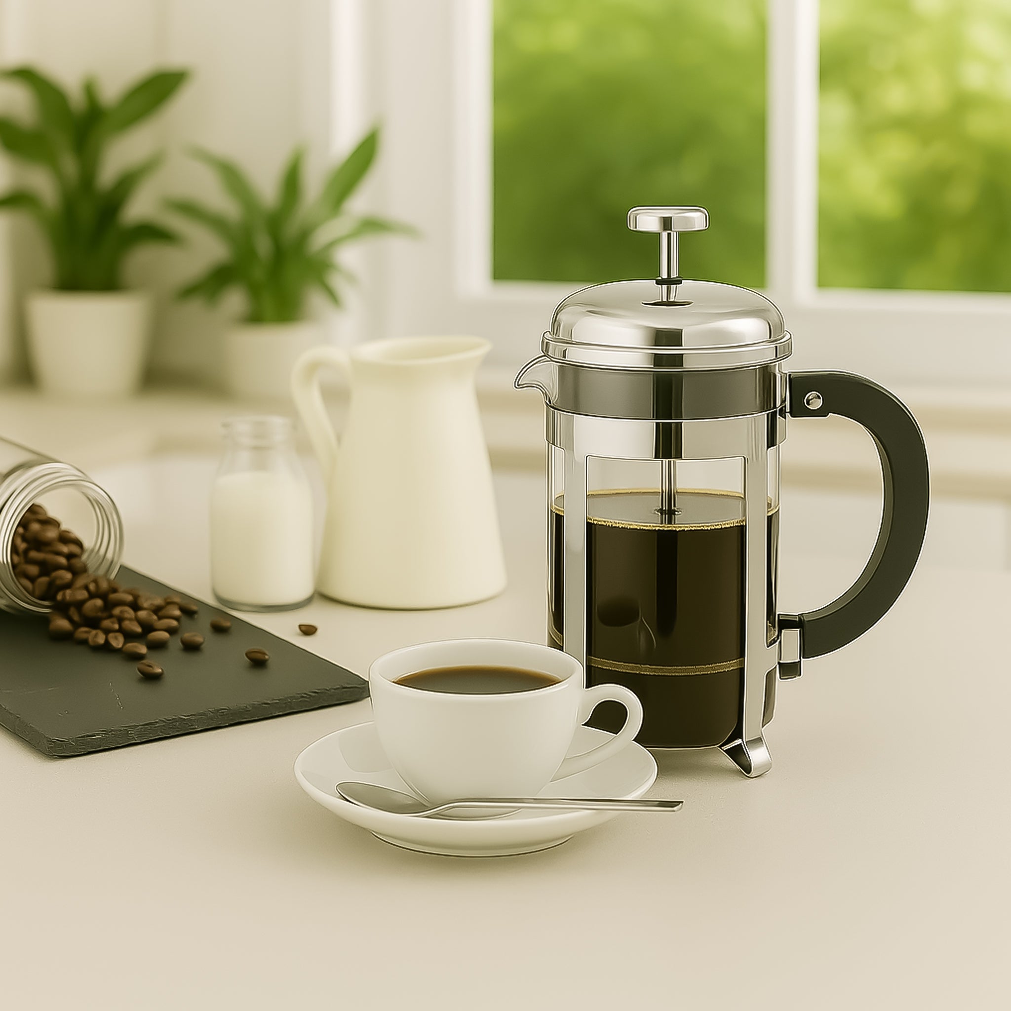 The Regent Coffee Plunger with Chrome Frame offers a sleek and durable design for brewing up to 3 cups (300ml) of rich, aromatic coffee. Its sturdy chrome frame provides stability and a polished look, while the stainless steel plunger ensures smooth filtration for a clean, full-flavored cup every time.