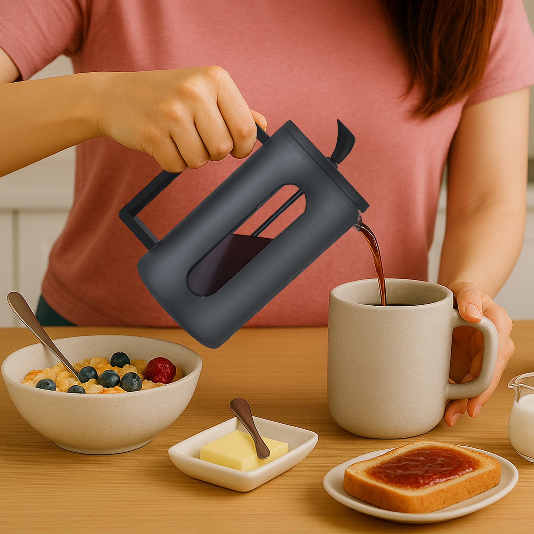 REGENT MILANO COFFEE PLUNGER WITH BLACK PLASTIC FRAME 6 CUP, 600ML