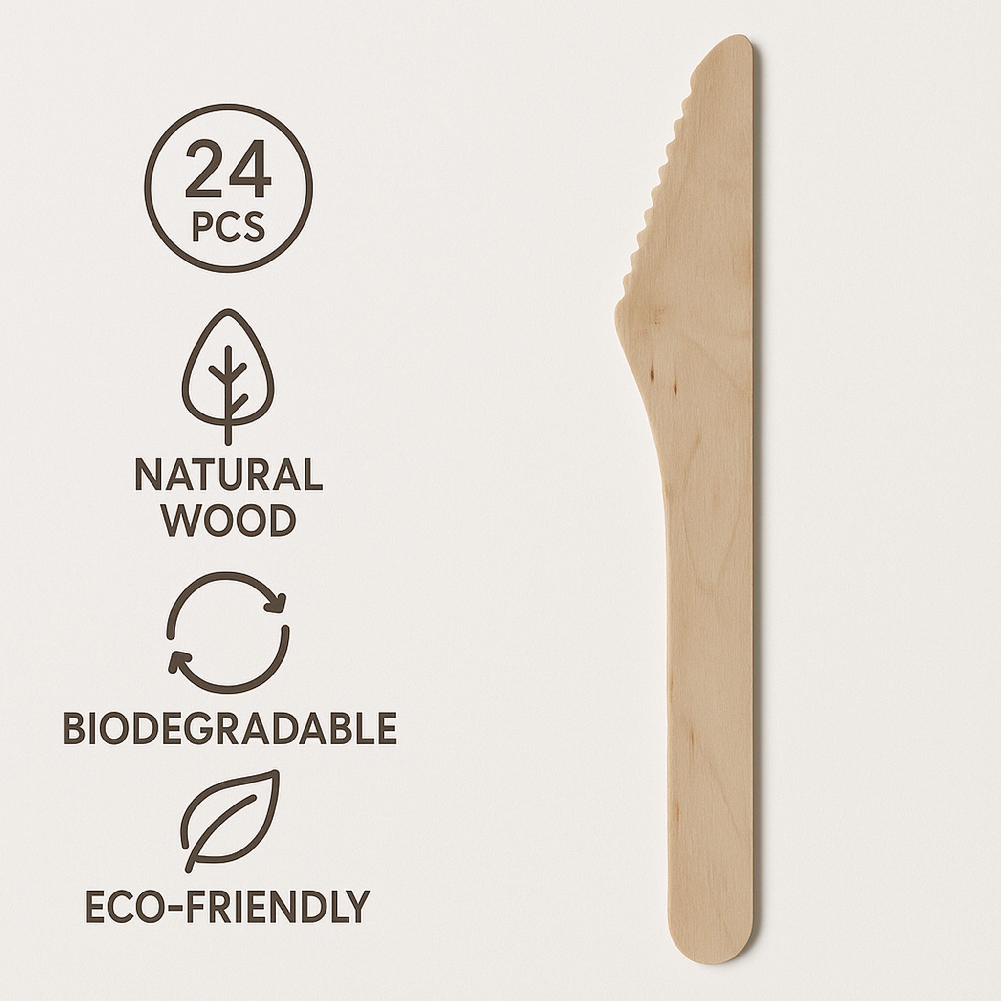 The Regent Disposable Wooden Knives come in a pack of 24, measuring 165mm. Made from natural wood, these knives offer sturdy and effective cutting while being biodegradable and eco-friendly. Their disposable design ensures quick and easy cleanup, making them a practical choice. Ideal for parties, catering, picnics, and outdoor events, they provide a sustainable alternative to plastic cutlery without compromising on quality or convenience.
