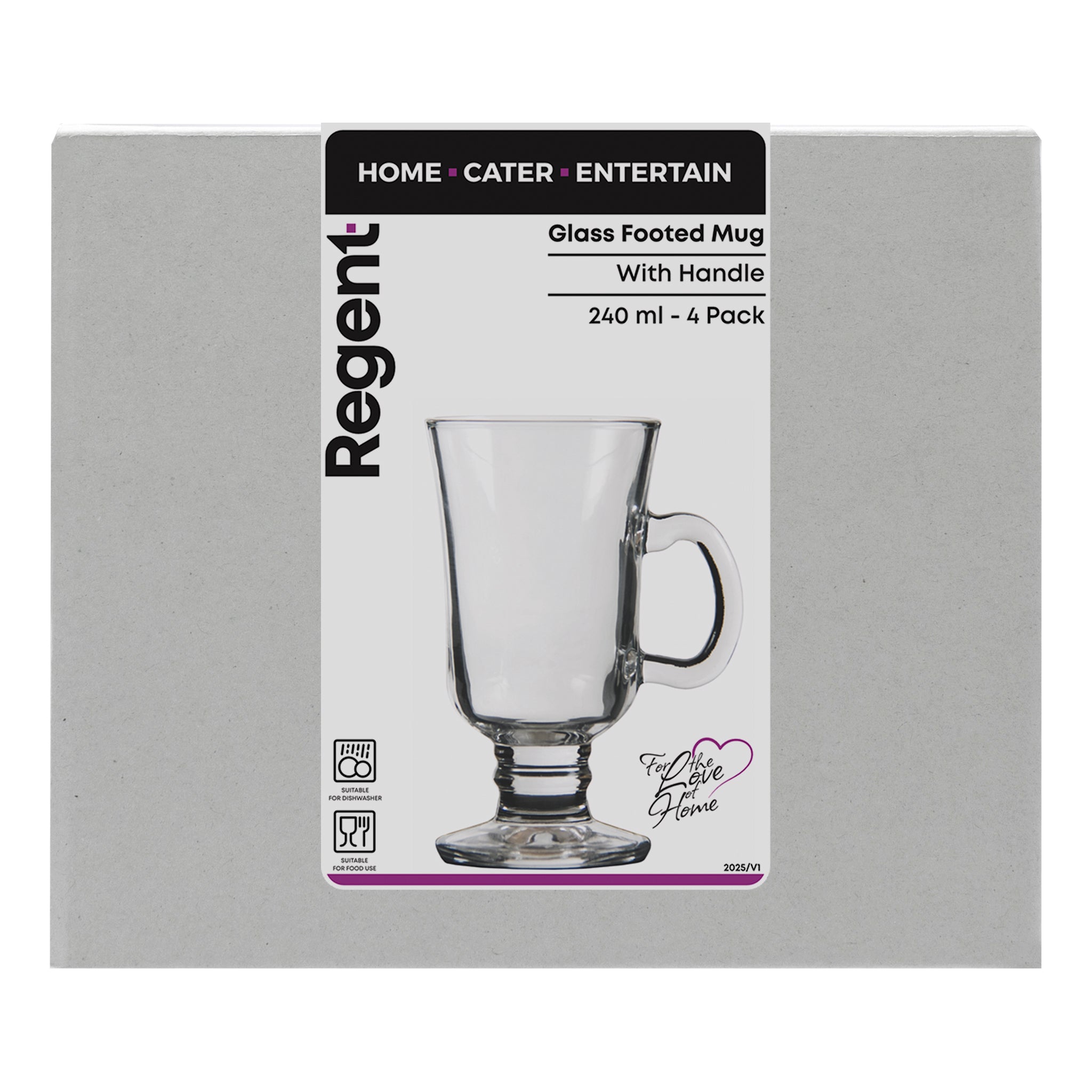 Manufactured from high quality glass for durability, the sturdy footed mug is ideal for home, work, canteens, and restaurants.