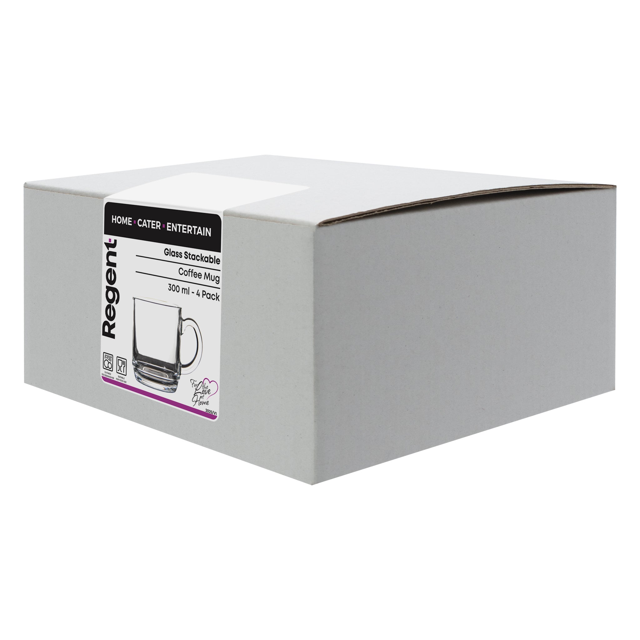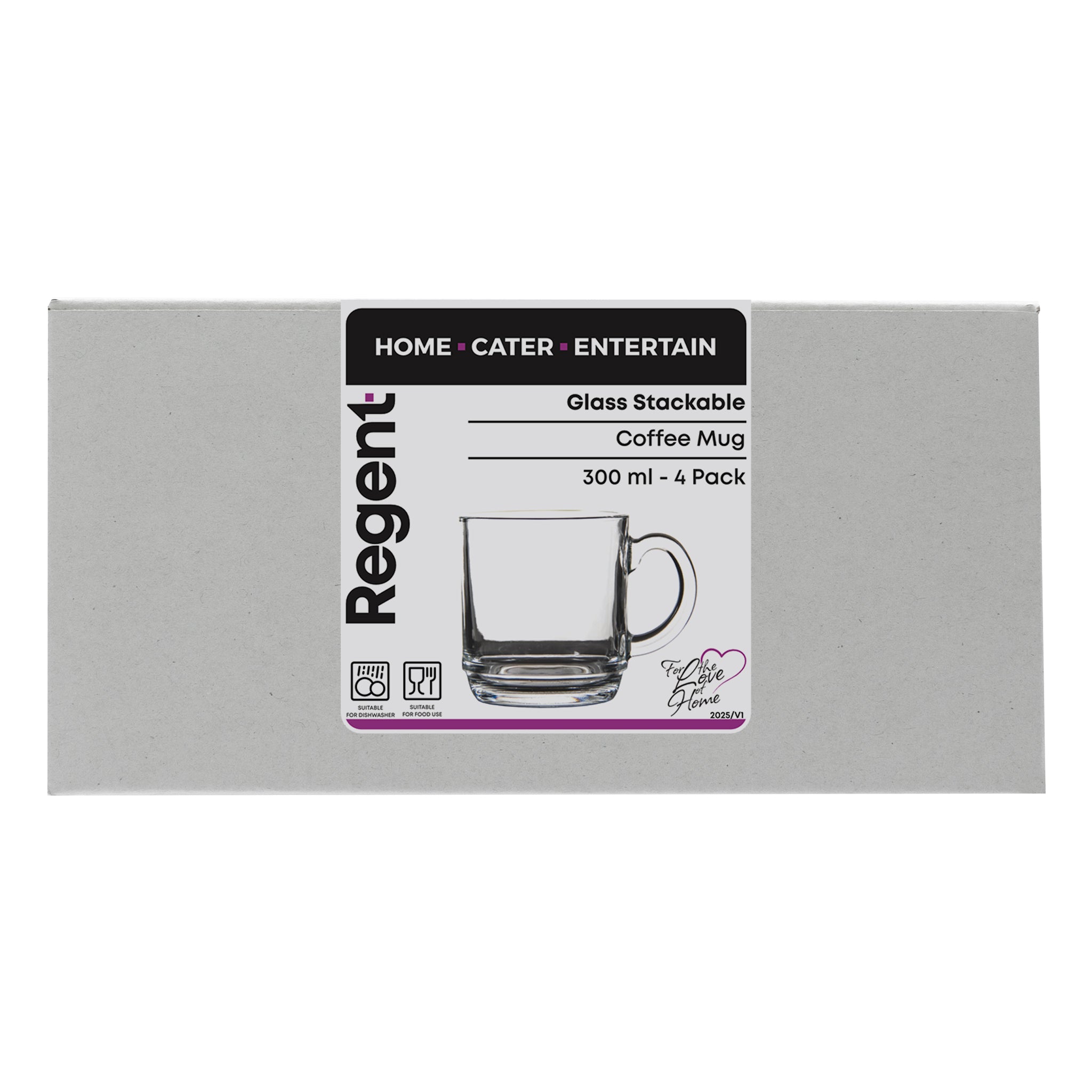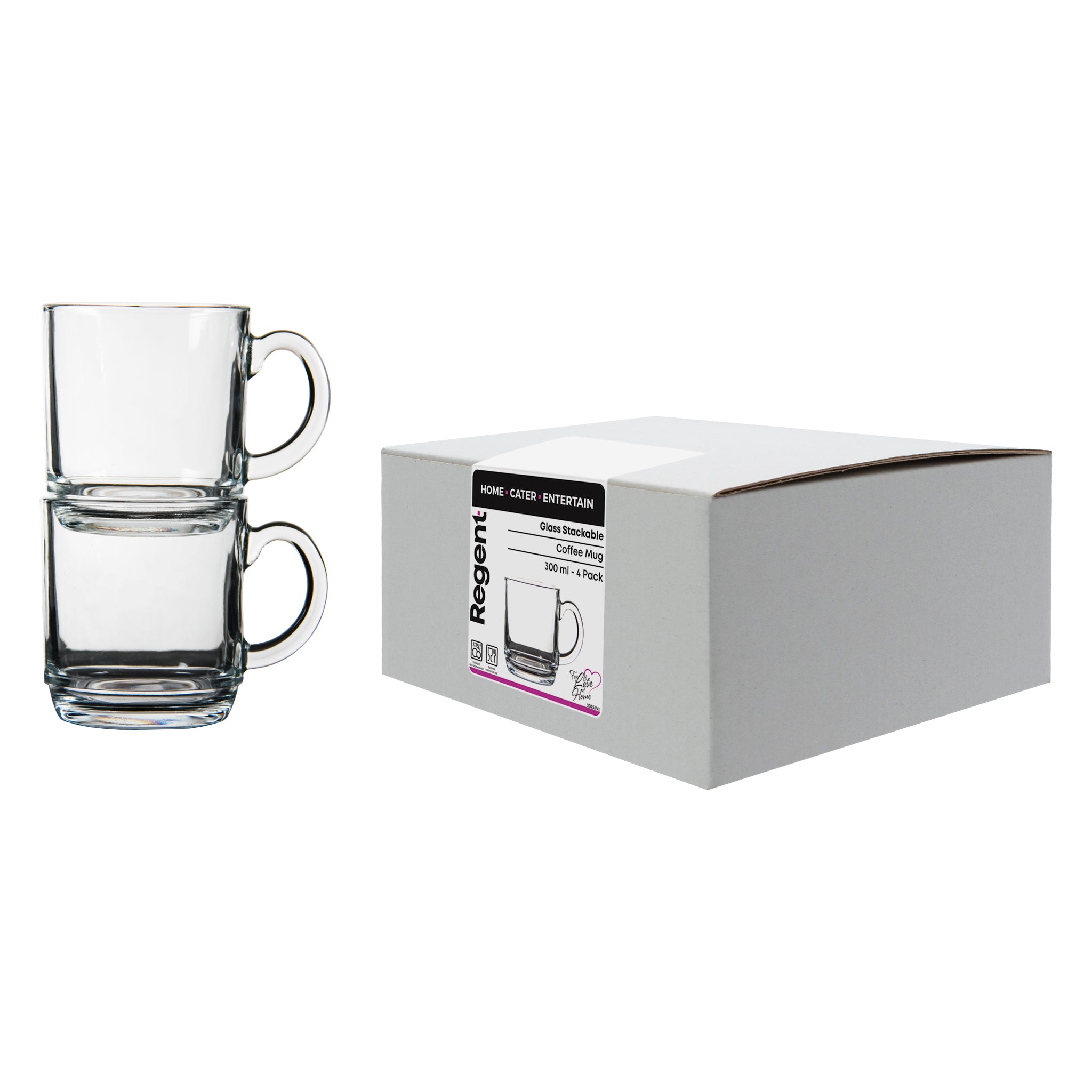 REGENT GLASS STACKABLE COFFEE MUG 4PK, 300ML