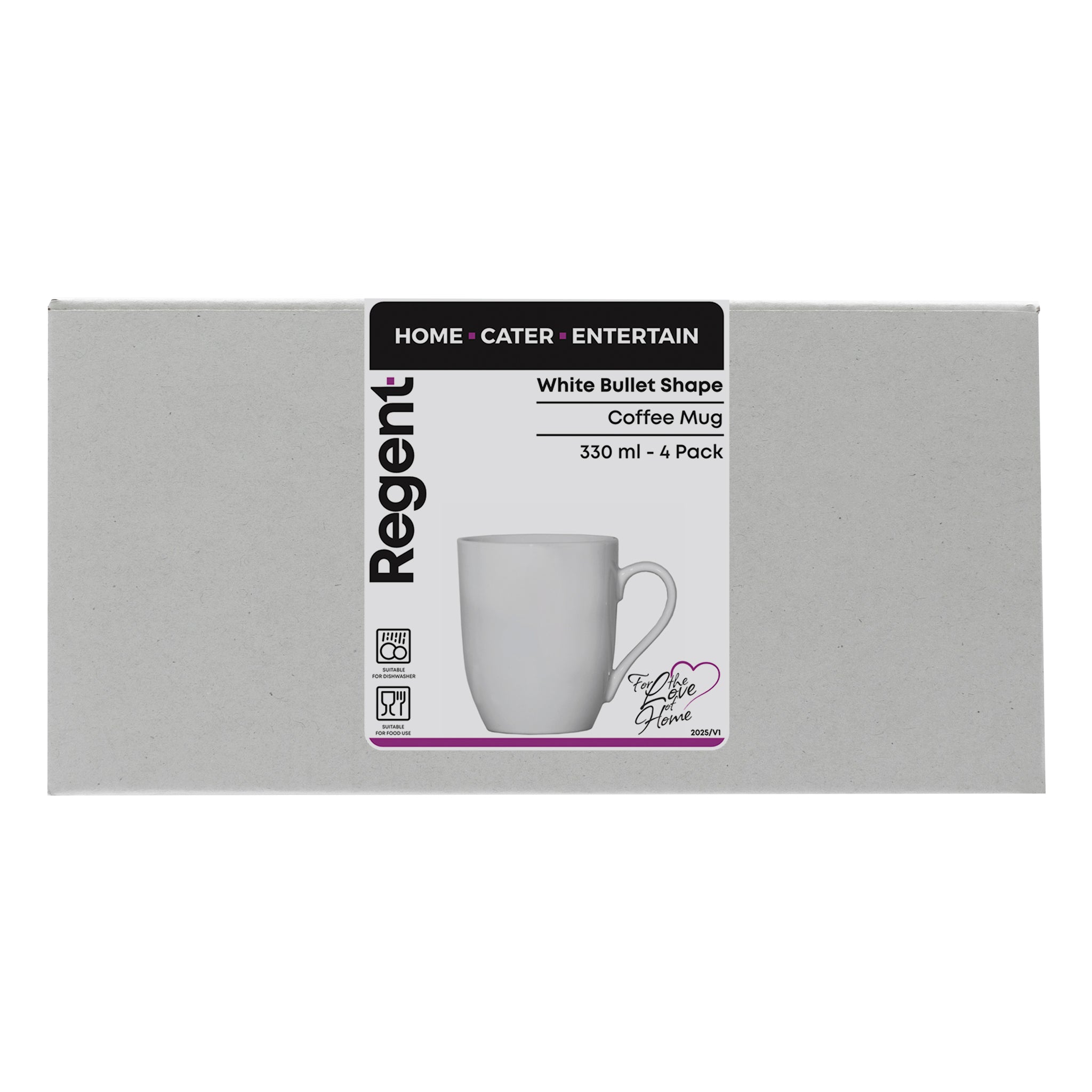 REGENT WHITE BULLET SHAPE COFFEE MUG 4PK, 330ML