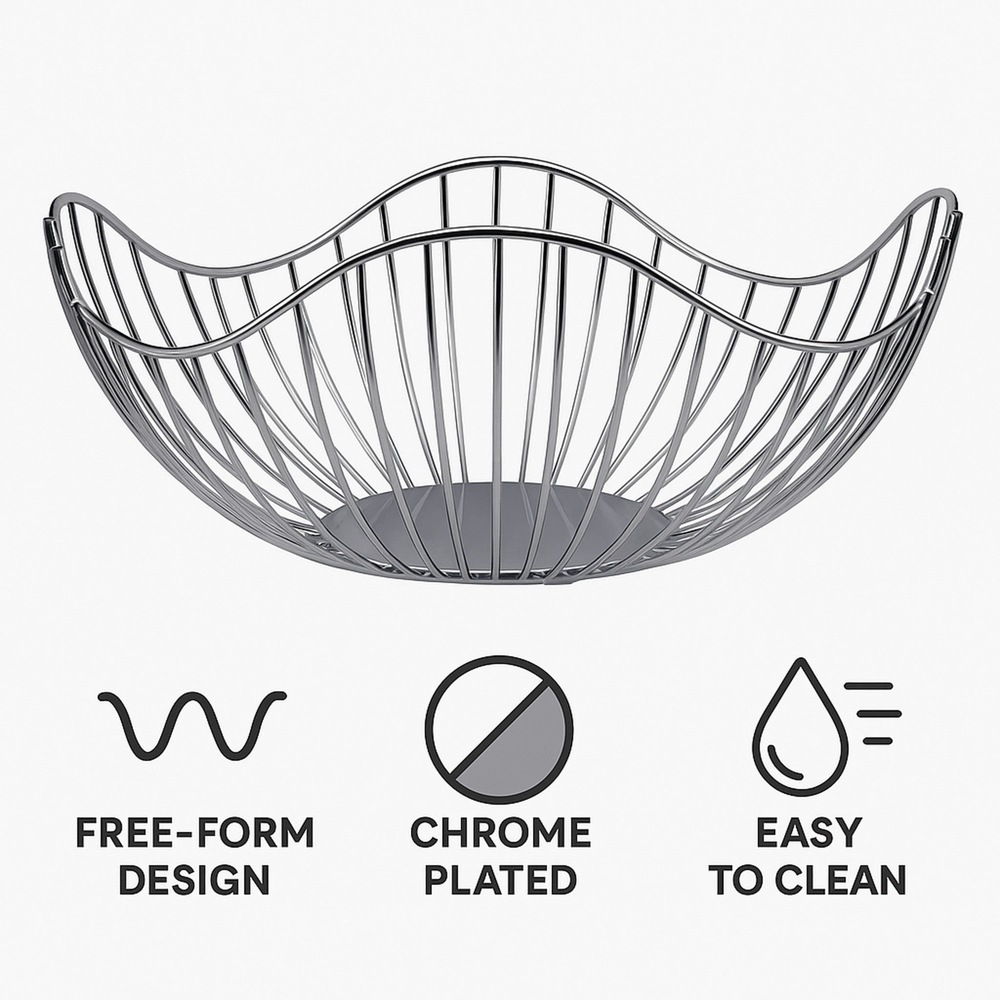 The stylish free-form design will make a striking center piece on your table adding a modern look to your home or restaurant while providing an excellent way to store your fruit and vegetables or serve bread products, snacks and candy.