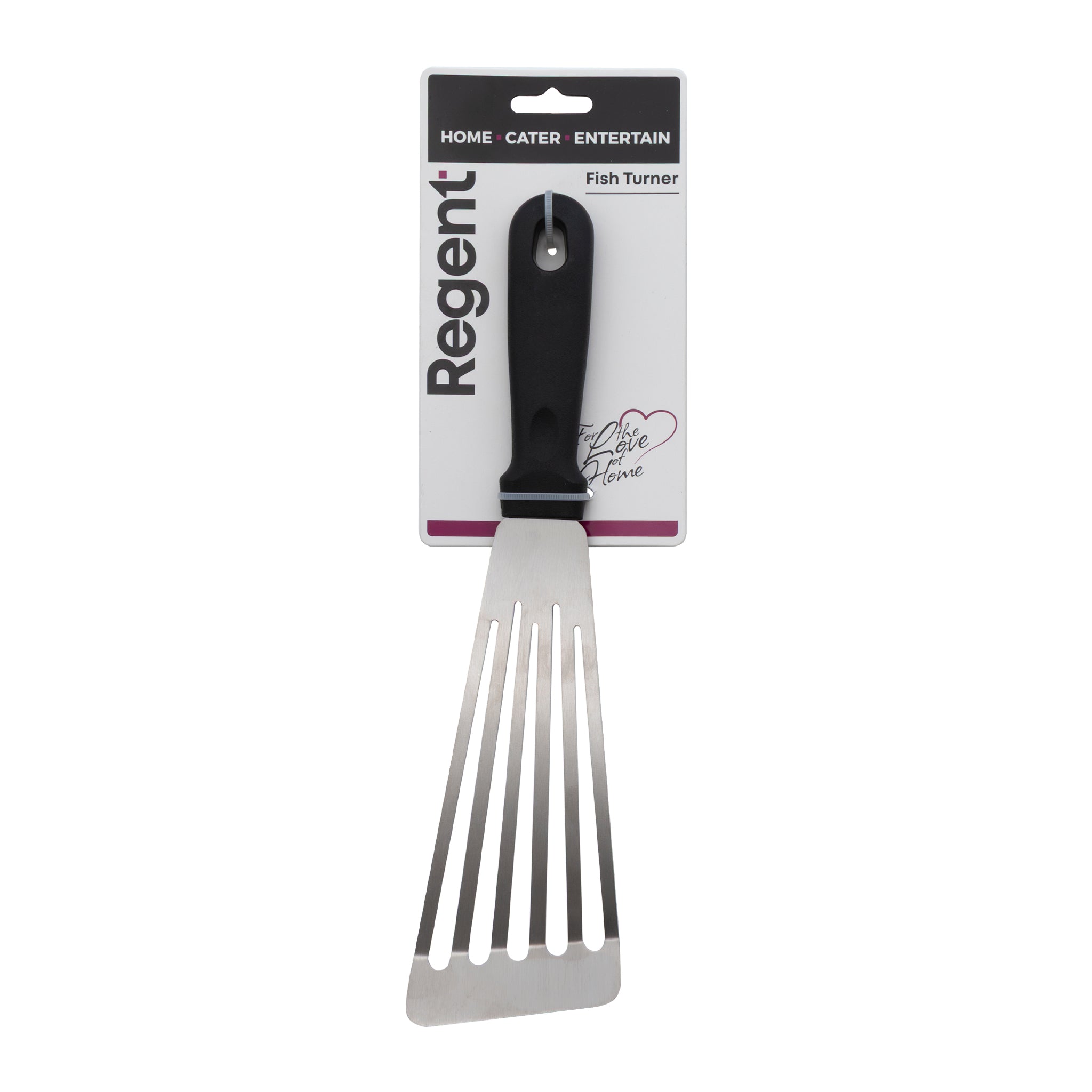 The Regent Fish Turner features a stainless steel blade paired with a durable PP handle for strength and comfort. Its thin, flexible blade allows for easy lifting and turning of delicate fish fillets without breaking them apart. The ergonomic handle provides a secure grip, enhancing control during cooking. Ideal for grilling, frying, or sautéing, this fish turner improves precision and efficiency in the kitchen while protecting the integrity of your seafood dishes.