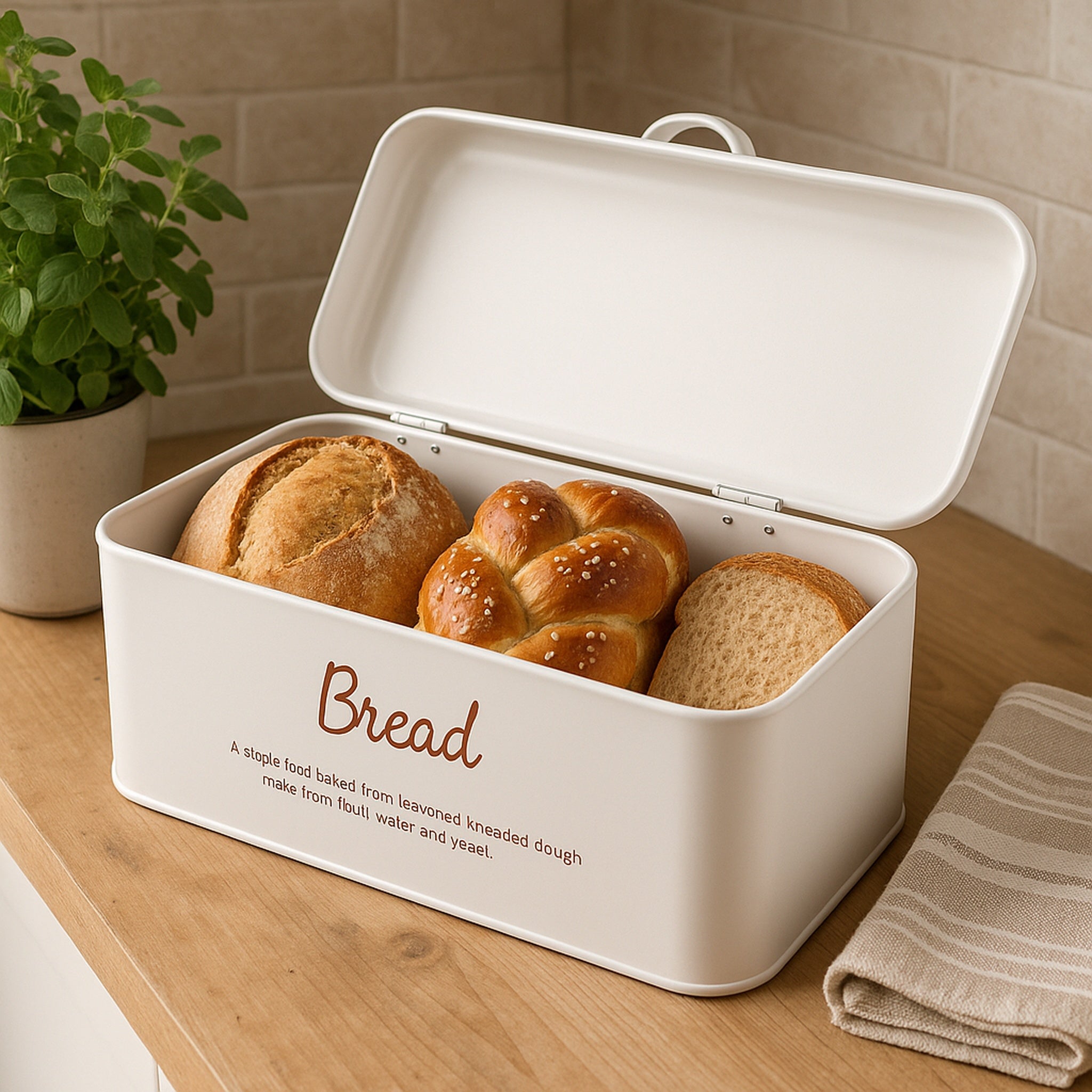REGENT BREAD TIN WHITE WITH GOLD PRINT, 335X190MM