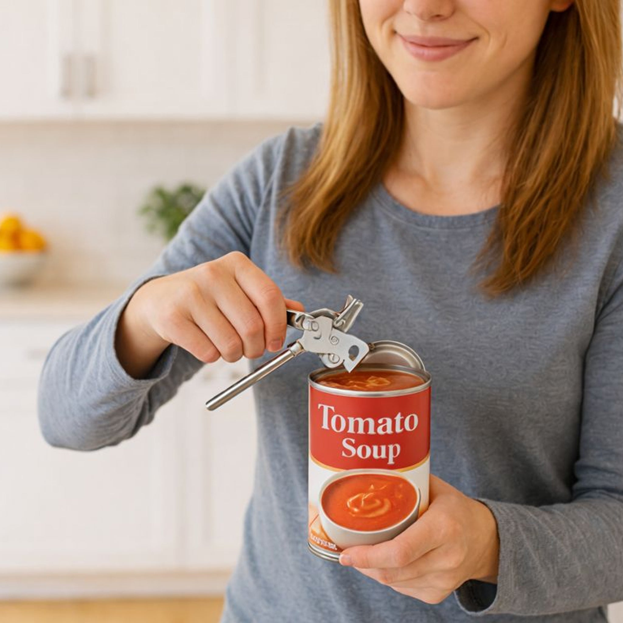 Our manual multifunctional butterfly can opener easily punctures and open all types of can lids, open cans of any size with the easy-to-turn knob and sharp tempered steel cutting wheel.
