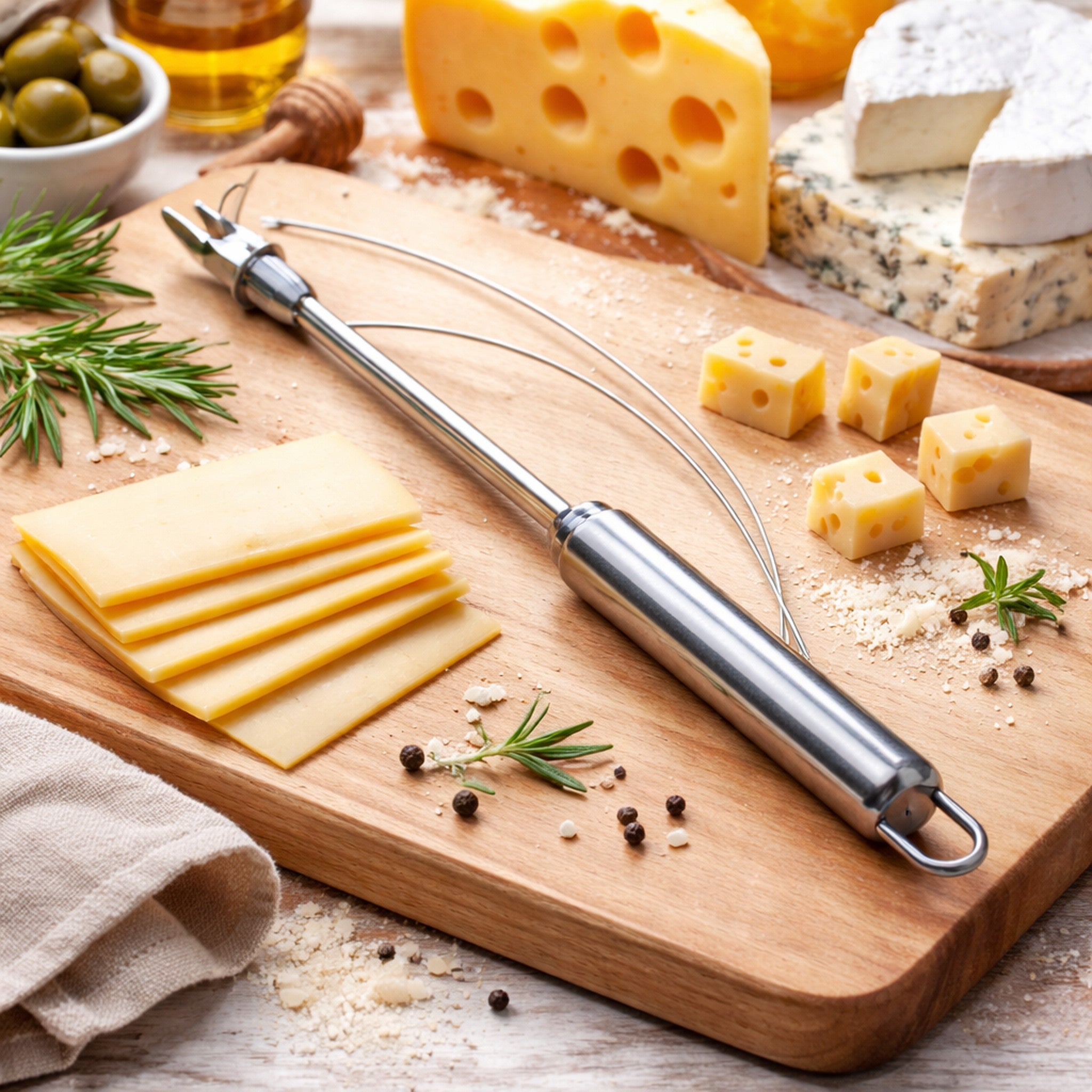 This innovative design wire cheese slicer is made from high quality stainless steel, is simple to use and is a must-have for your kitchen.