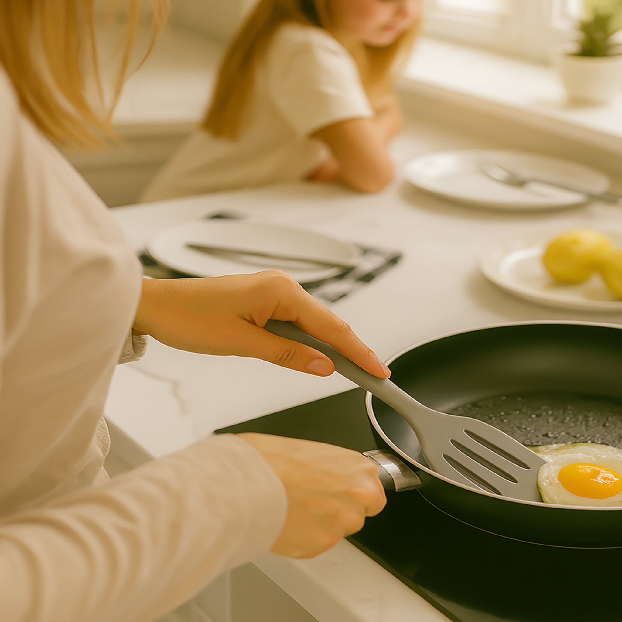 A must have when cooking with nonstick cookware and bakeware. It will not scratch nonstick surfaces, enamel coatings or glass pots and pans.