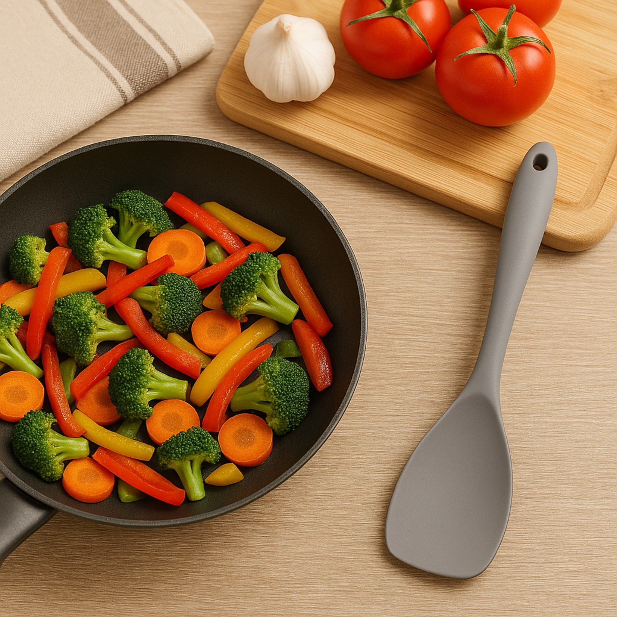 A must have when cooking with nonstick cookware and bakeware. It will not scratch nonstick surfaces, enamel coatings or glass pots and pans.