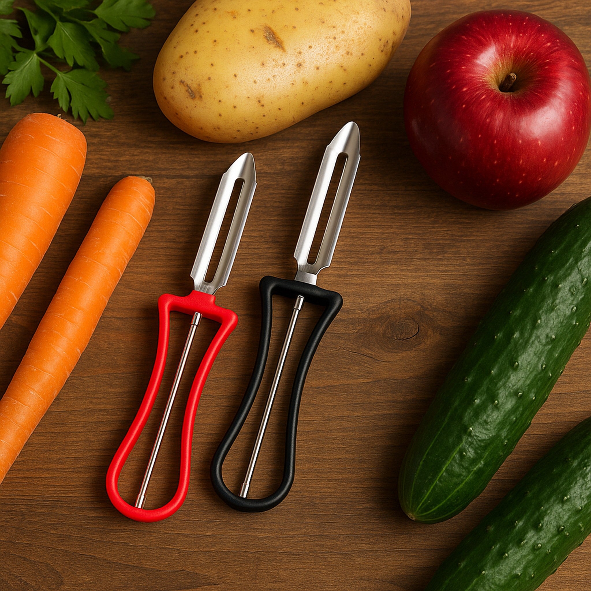 Our 2-piece vegetable and fruit P peelers with ergonomic handles fit perfectly in the palm of your hand and provides full control while you work. They are suitable for left and right-handed users and are a safe and practical choice for use in any kitchen.