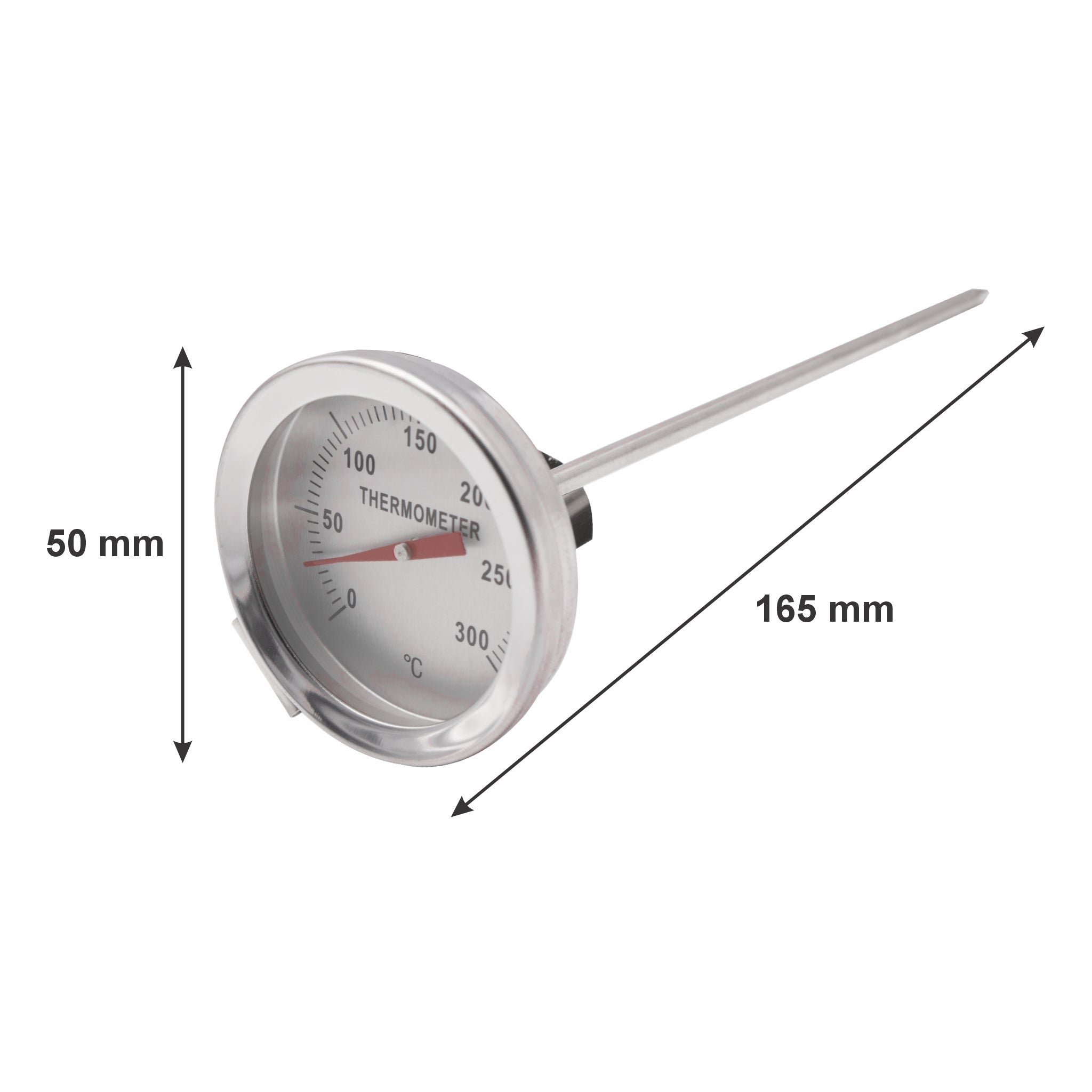 It has a large 50mm dia. transparent dial for ease of reading the temperature and a 165mm long highly sensitive and accurate measuring probe with an adjustable stainless steel clip for securing the thermometer to the side of the cooking vessel for safety and stability.