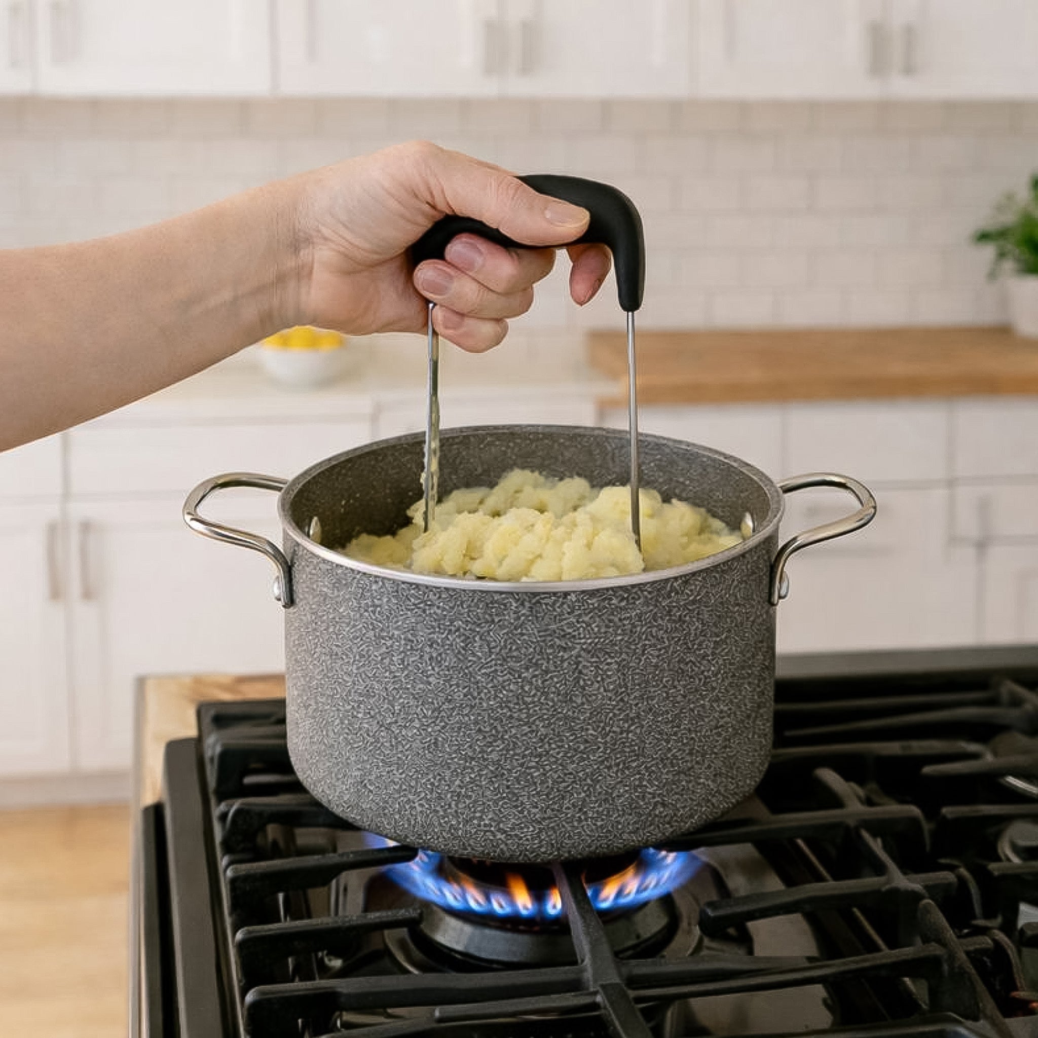 Quick and effortless mashing of potatoes are due to its strong and sturdy construction and masher head design.