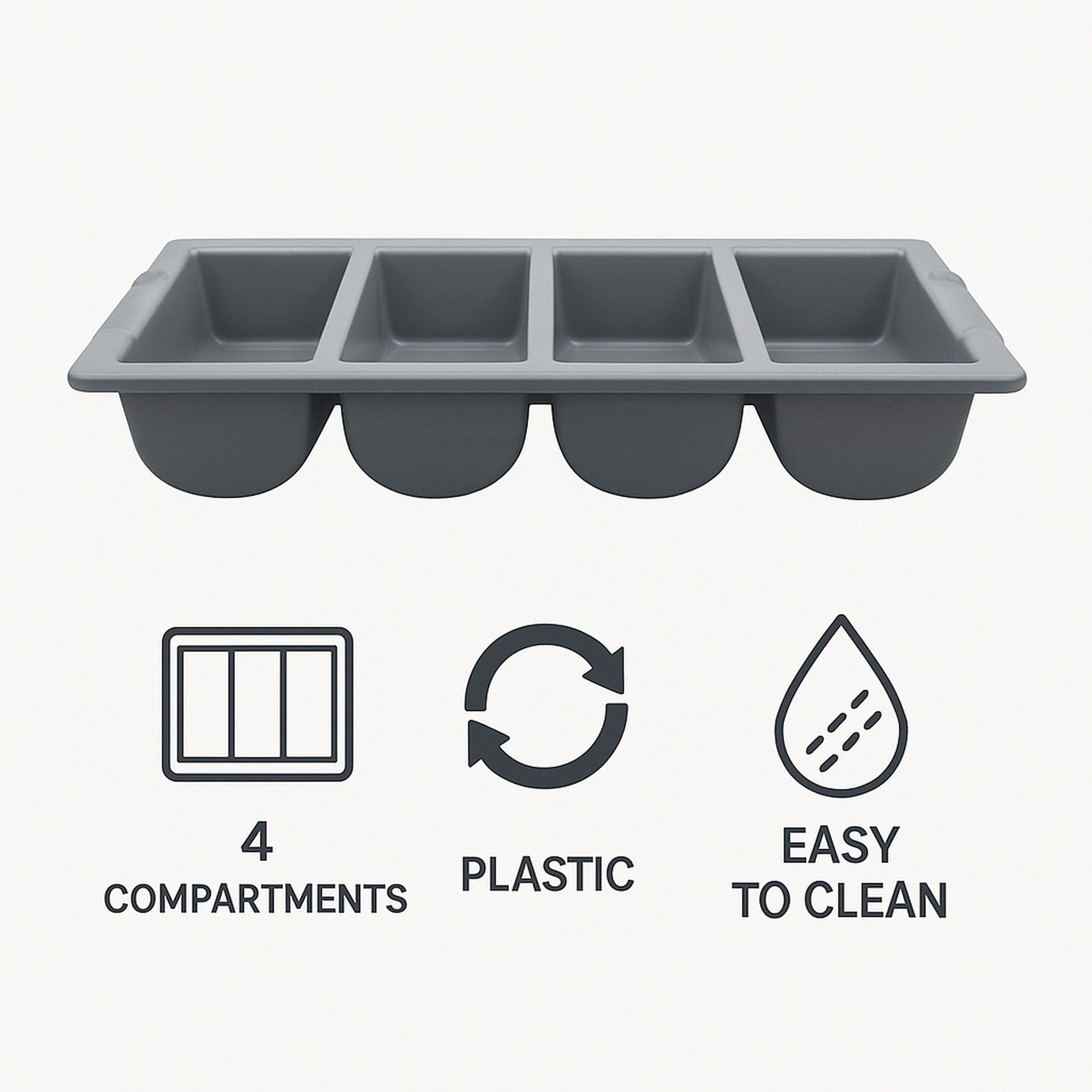 Transform your kitchen organization with the Regent Cutlery Tray featuring 4 practical divisions in functional grey plastic tray. This practically designed tray maximizes drawer space while keeping your utensils perfectly sorted and easily accessible. The durable construction ensures long lasting performance, while the sleek grey finish complements any kitchen aesthetic. No more wasting time searching through jumbled drawers, this efficient organizer streamlines your cooking preparation and protects your valuable cutlery from unnecessary damage. Invest in this essential kitchen solution to enjoy the satisfaction of a perfectly organized drawer every time you reach for a utensil.