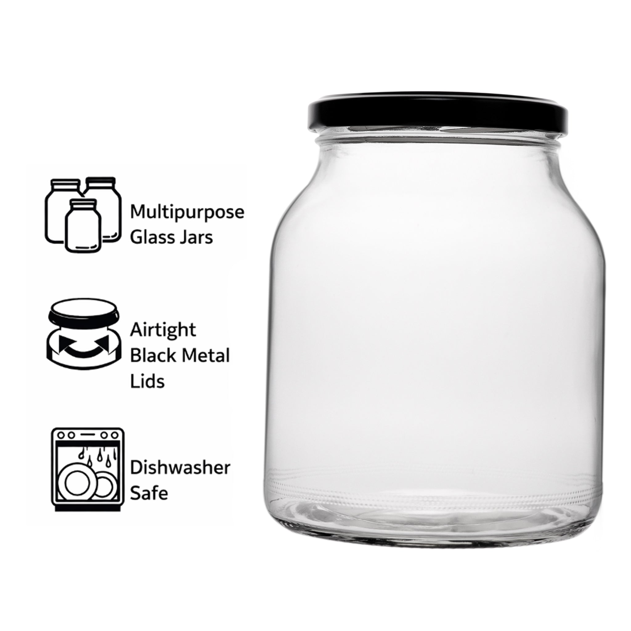 REGENT ROUND JAR WITH BLACK LID 4PK, 910ML