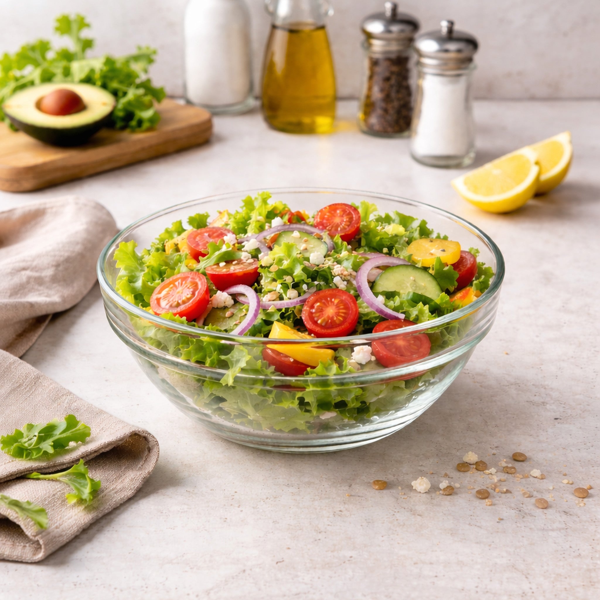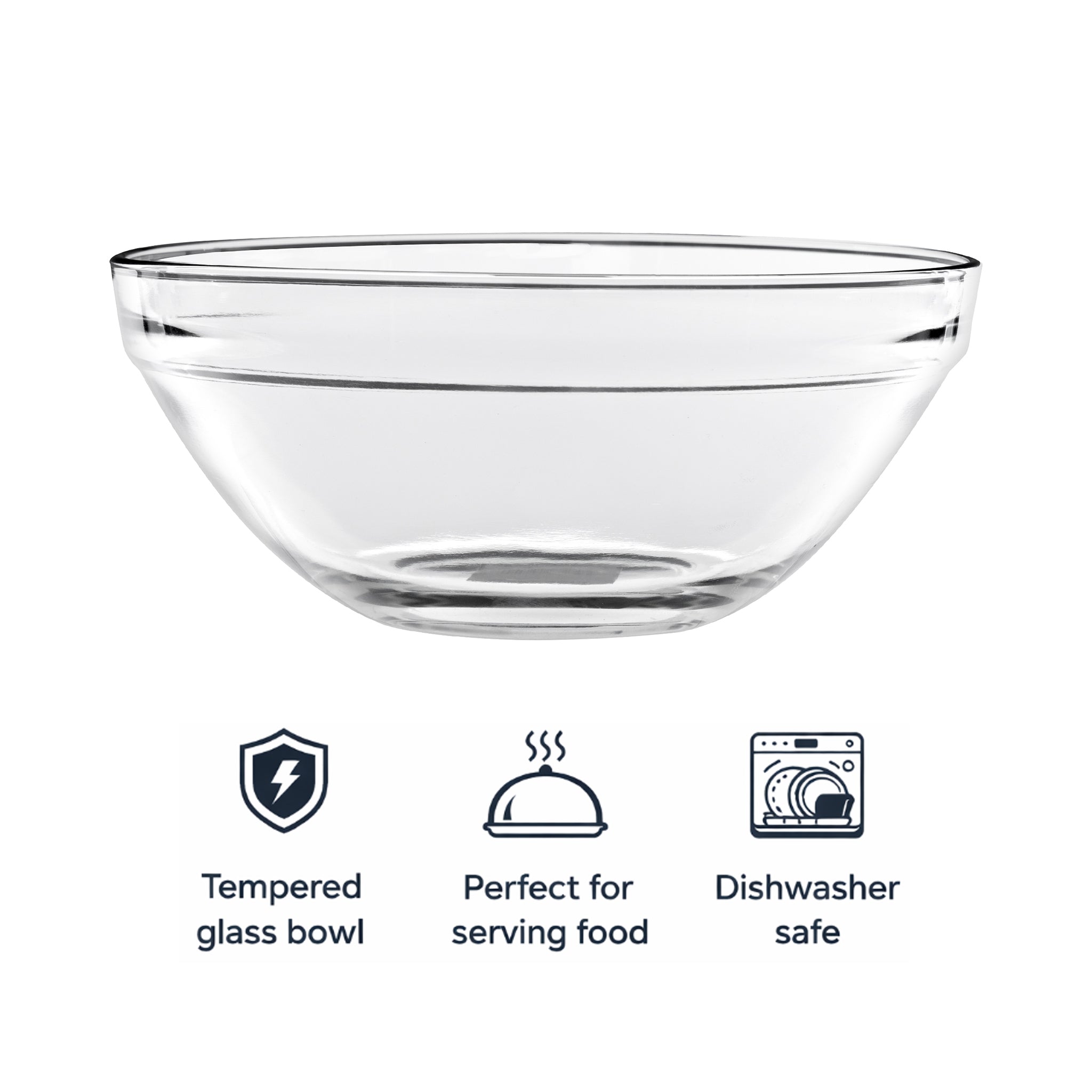 Made from tempered glass the Regent stackable Glass Mixing Bowl with its 900ml capacity, is perfect for mixing dough and batter, food preparation, as well as for serving and storing food.