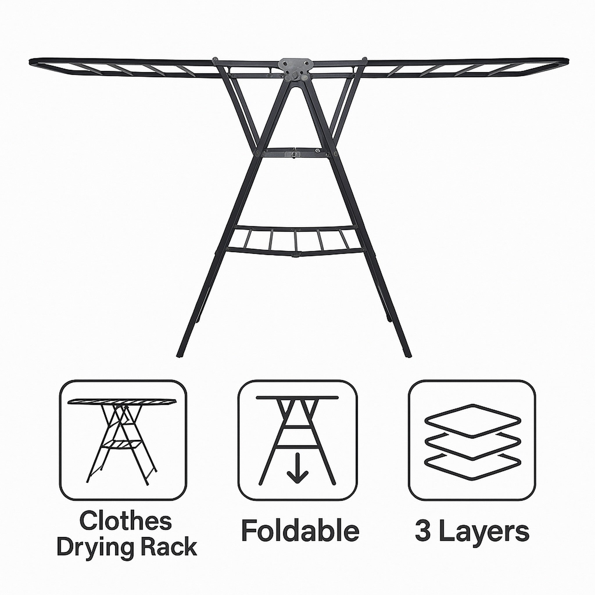 Introducing the new and contemporary 3 layer foldable clothes drying rack. Ideal for those who need to dry clothes in constrained areas, as the wings are adjustable for height and length.
