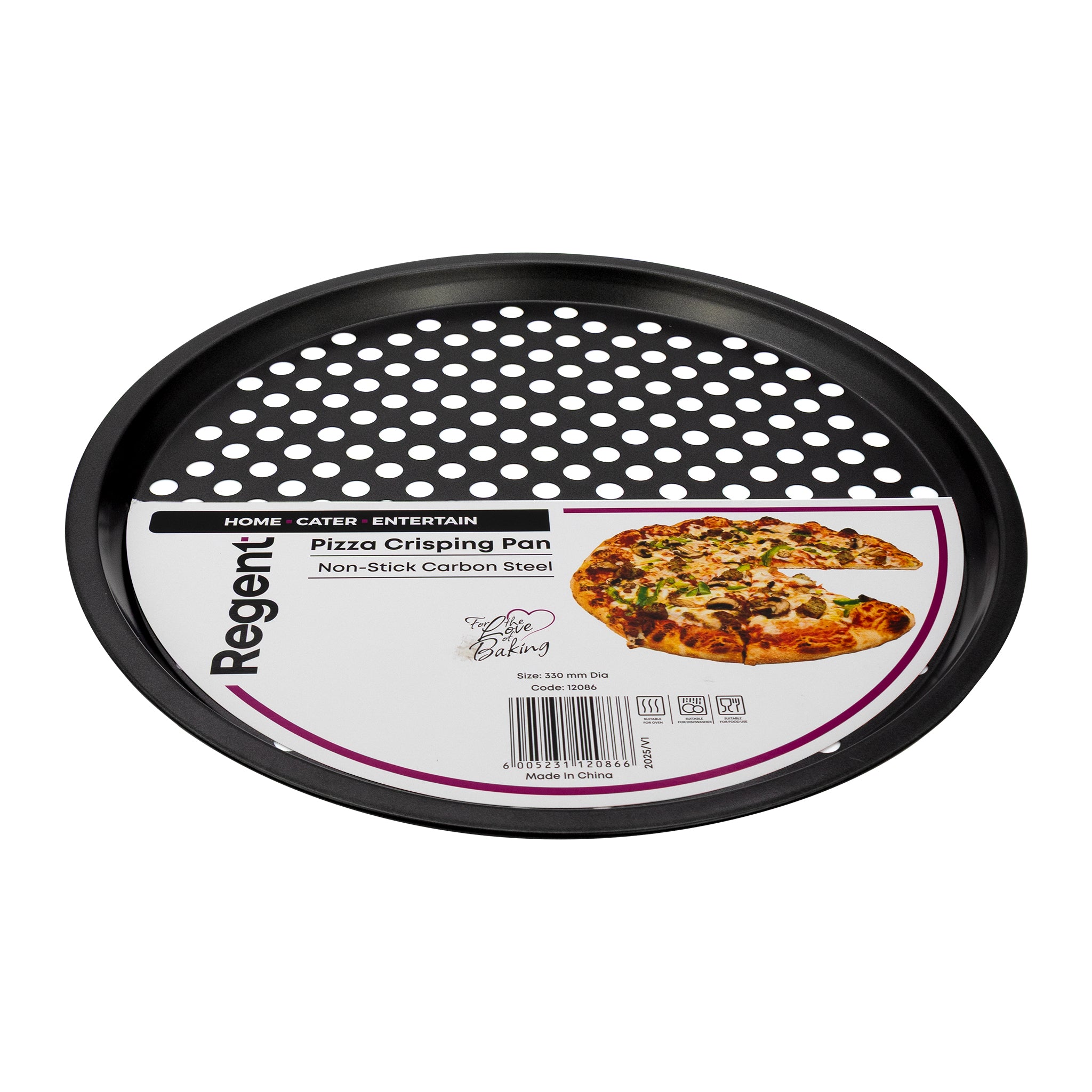 REGENT BAKEWARE PIZZA CRISPING PAN CARBON STEEL NON STICK COATED, 325MM DIA