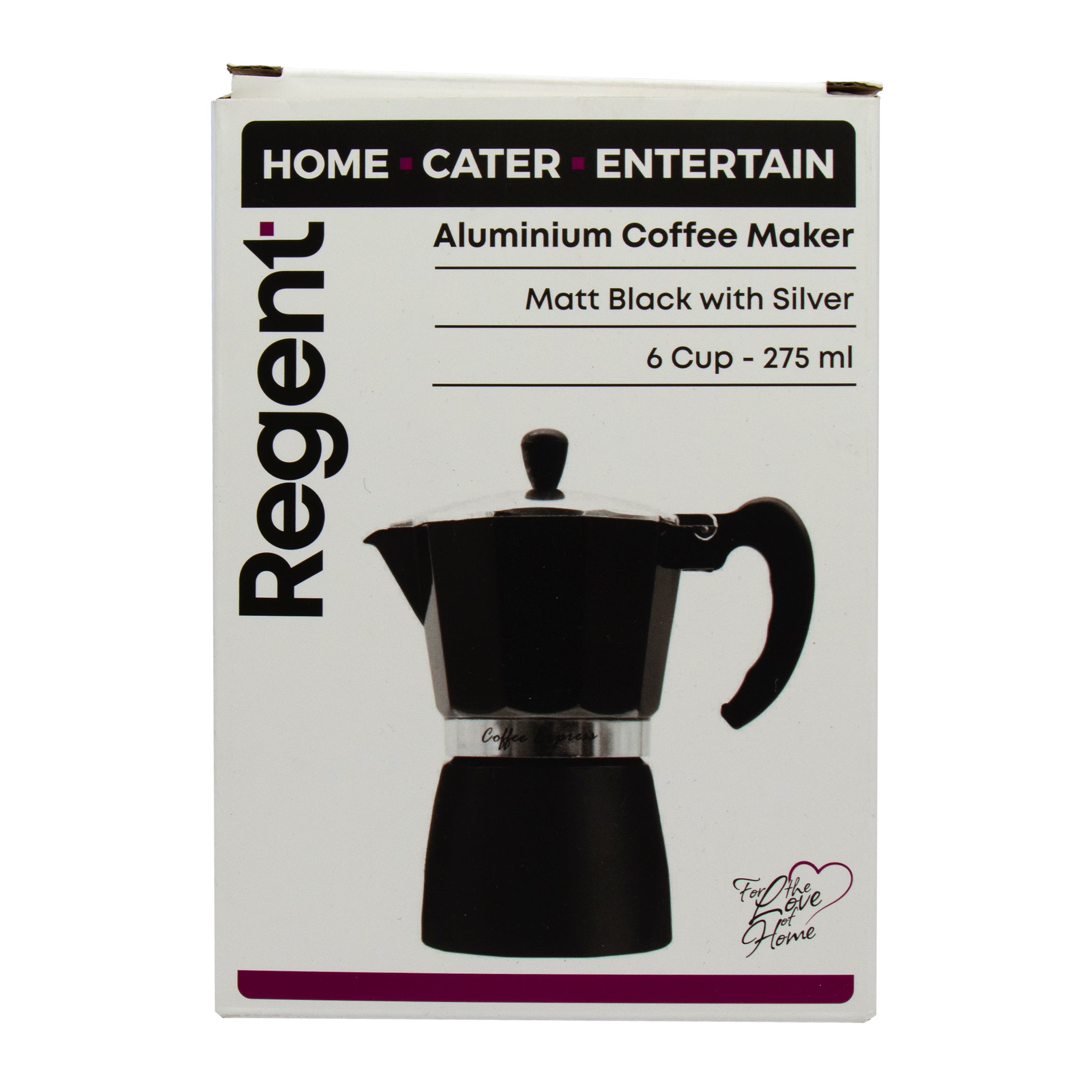 REGENT COFFEE MAKER ALUMINIUM 2 TONE MATT BLACK WITH SILVER 6 CUP, 275ML