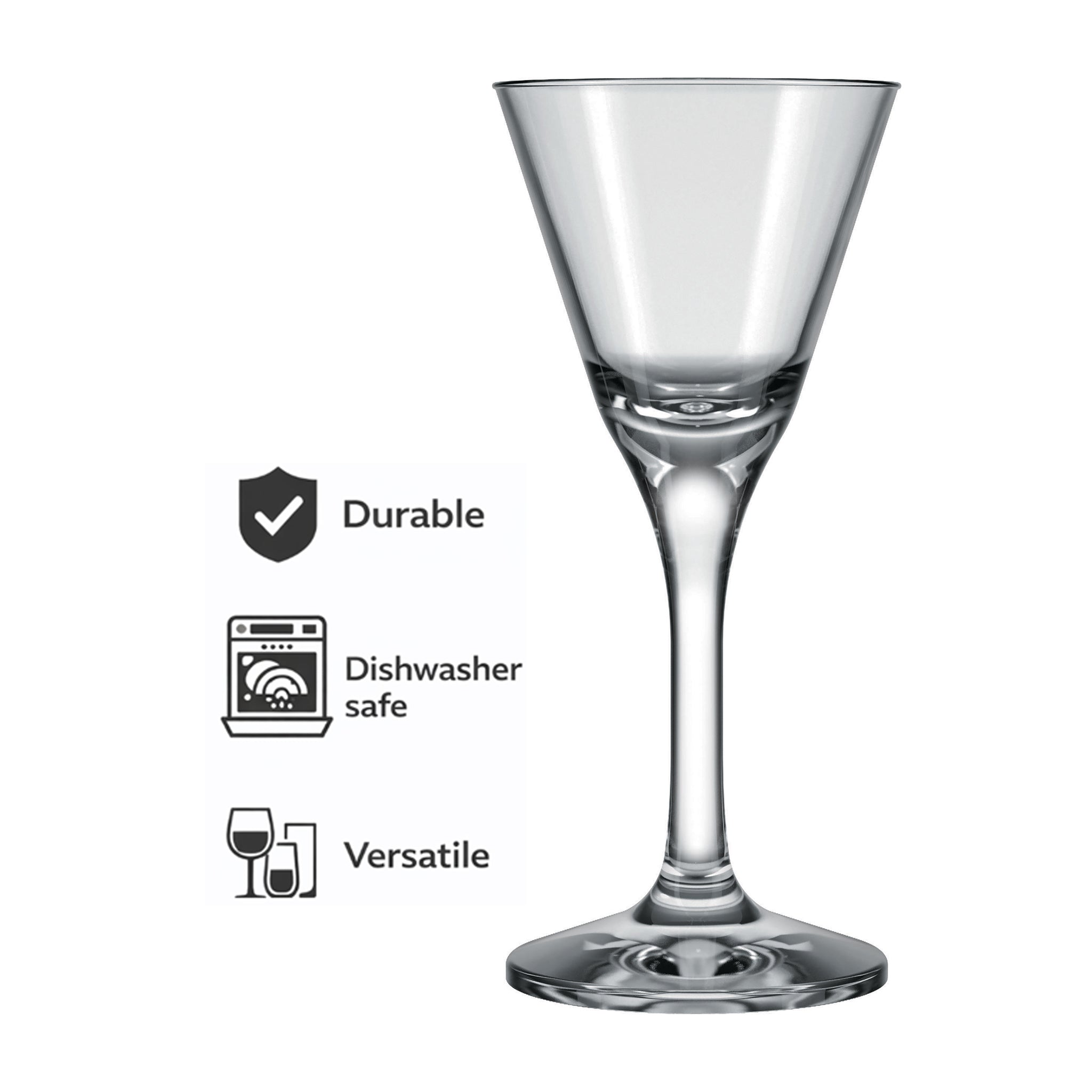 The Nadir Donna Stem liqeur glasses are perfect for tasting special drinks on special occasions. With a capacity of 65ml, these glasses provide a unique experience when enjoying spirits such as Grappa, liqueurs, brandies, ports and sherry. Its sophisticated design and refined finish enhance the experience of savouring each sip, making every moment of tasting special and highlighting its sensory characteristics and enhancing the taste.