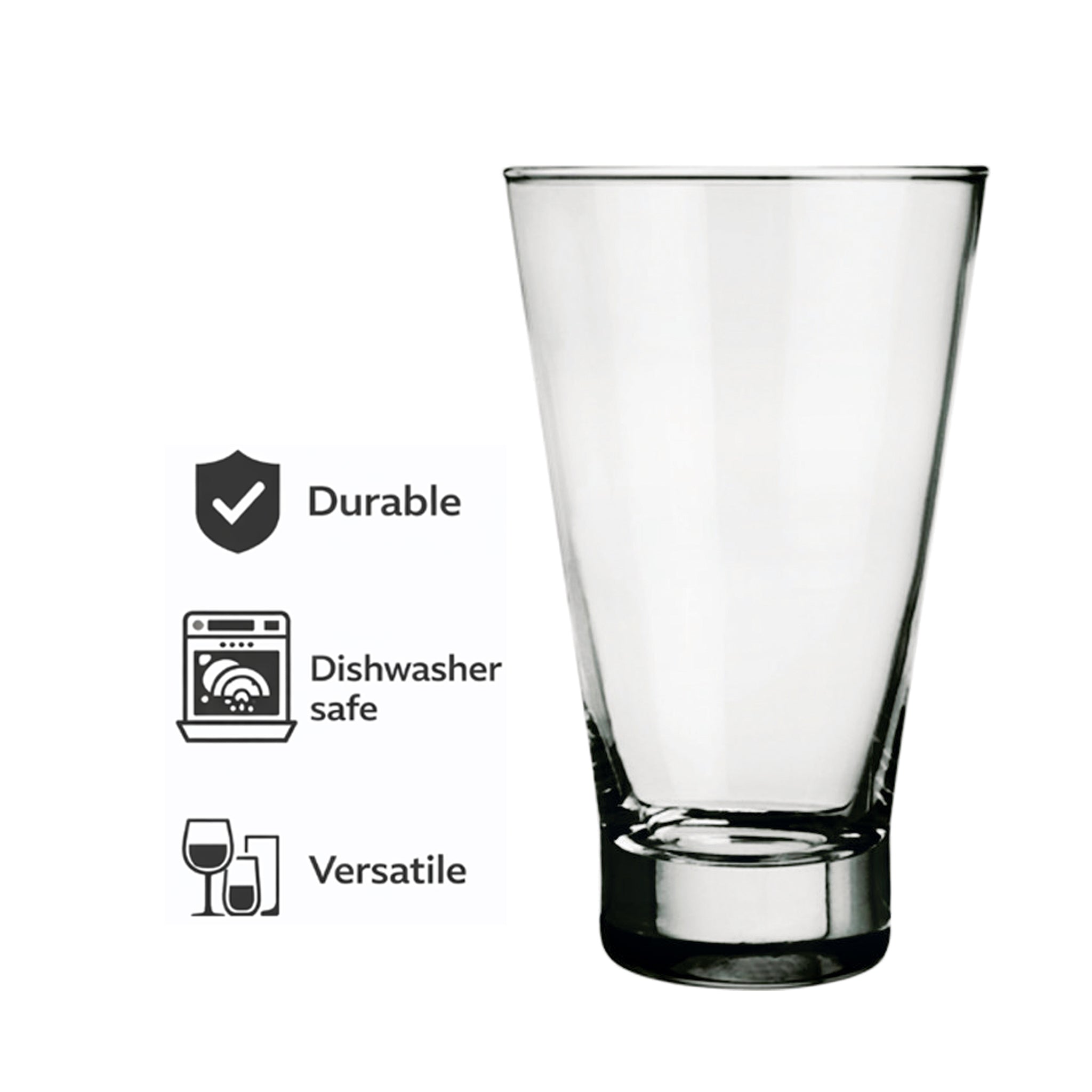 The Consol Seville Hiball Tumbler 4 Pack offers 400ml glasses designed for a wide range of beverages, including cocktails, spirits and soft drinks. Their robust construction ensures long-lasting use, while the clear glass enhances the visual appeal of your drinks. The ergonomic design provides a comfortable grip, making these tumblers suitable for both everyday use and entertaining guests with style and reliability.