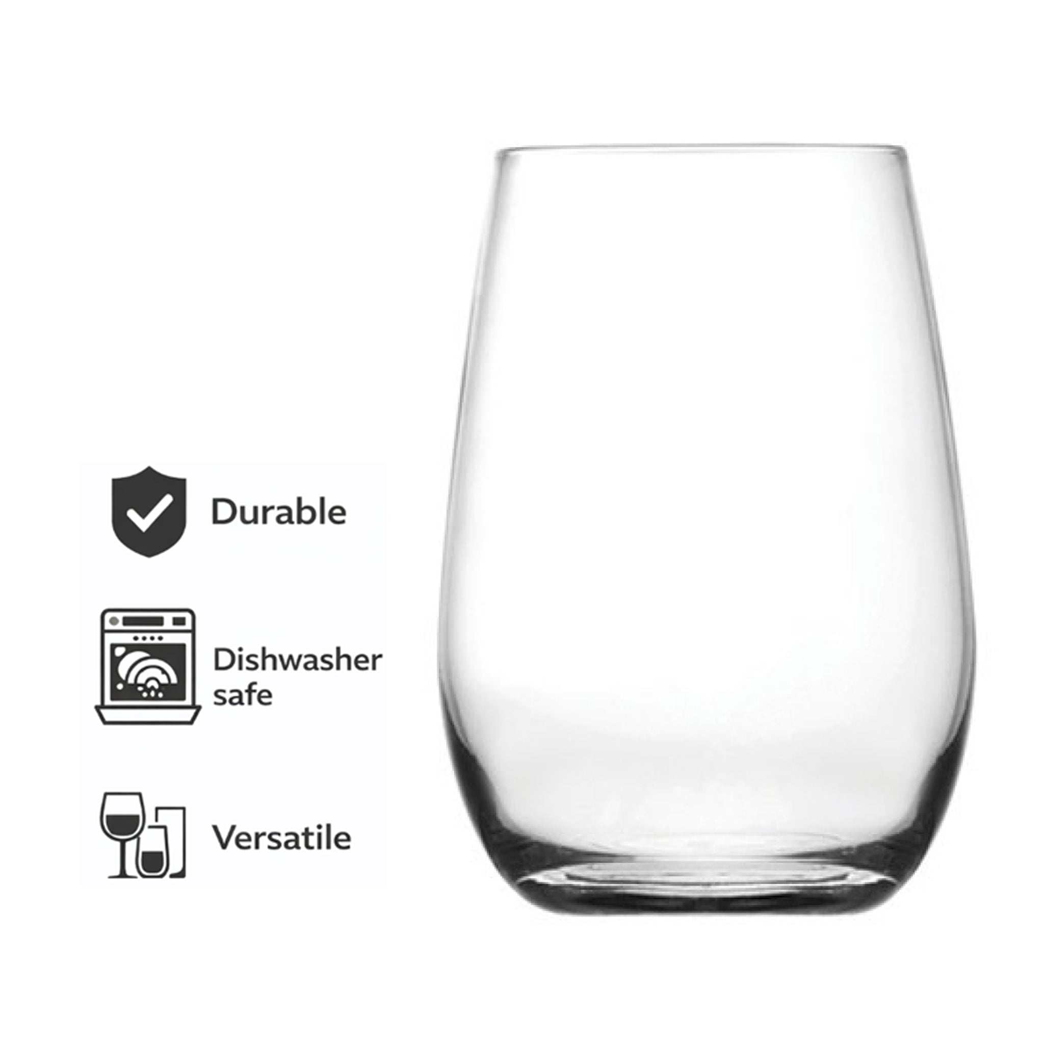 Elevate your drinking experience with these versatile REGENT Stemless Glass Tumblers. The modern, stemless design provides exceptional stability while maintaining an elegant profile that transitions seamlessly from casual gatherings to sophisticated events. With a perfect 350ml capacity, these glasses accommodate generous servings of wine, cocktails, water, or juice. The ergonomic shape fits naturally in your hand, encouraging swirling to release aromas without the worry of tipping. Crafted from premium, crystal-clear glass, they showcase the beautiful colors of your beverages while resisting chips and scratches. This convenient set of six ensures you're always prepared for entertaining, while their space-saving design allows for easy storage. Dishwasher safe for effortless cleaning, these multipurpose tumblers combine style, functionality, and durability.