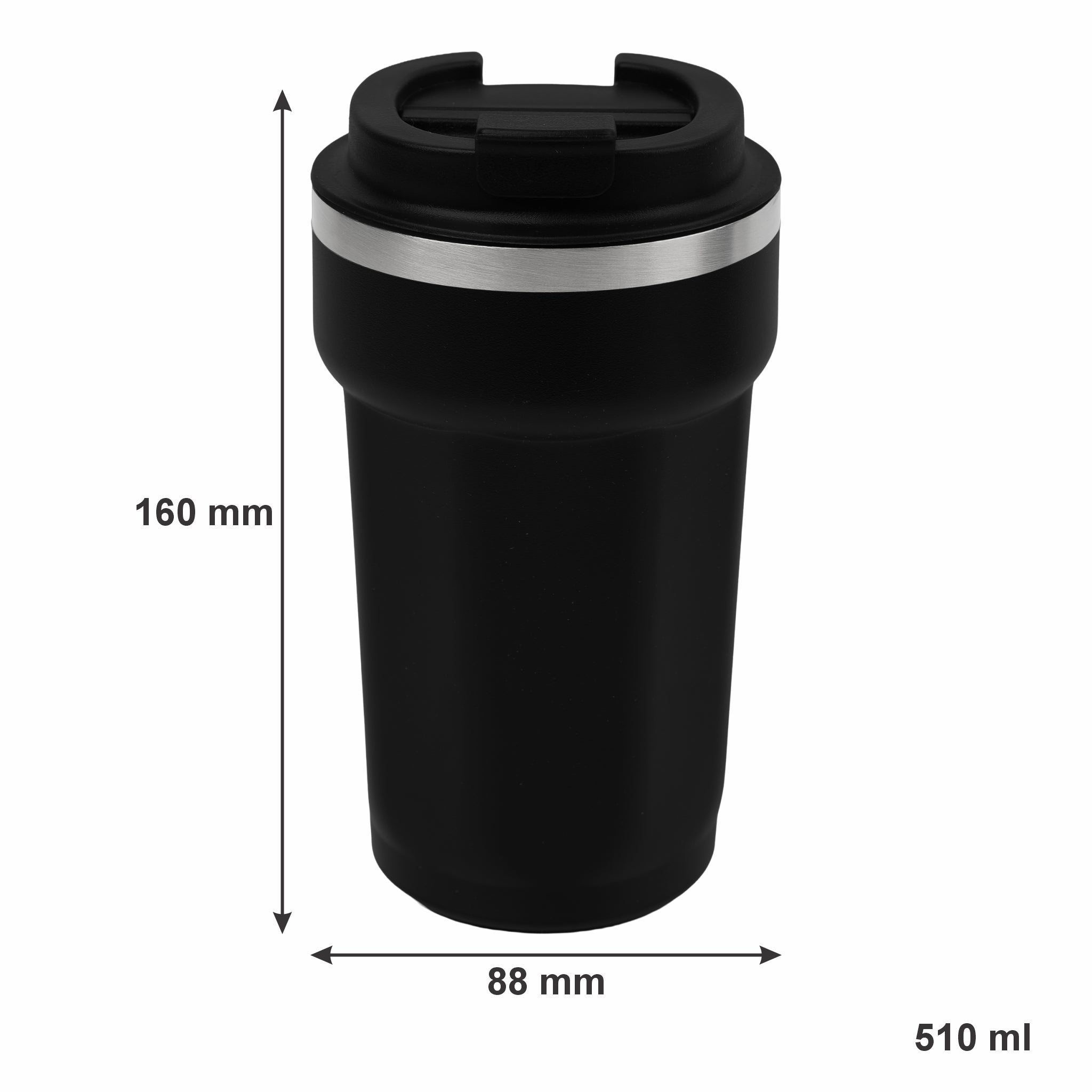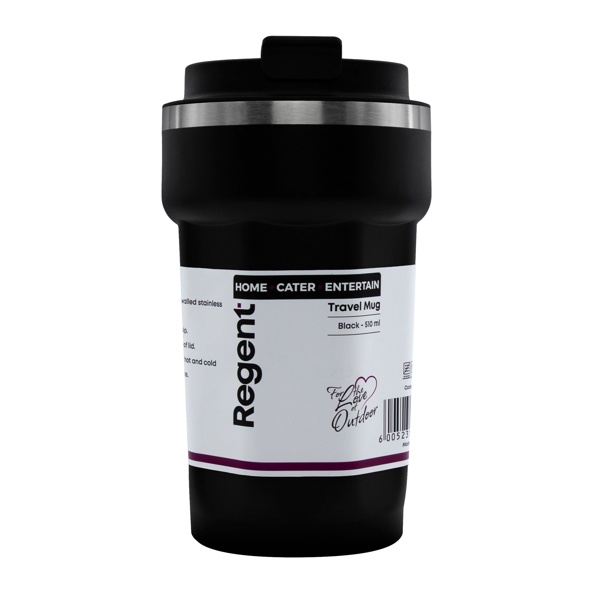 The Regent Double Wall Stainless Steel Travel Mug in midnight black holds 510ml of your favourite beverage, keeping it hot or cold for hours thanks to its insulated double-wall design. Crafted from high-quality stainless steel, it offers resistance to impact and corrosion. The secure, spill-resistant lid ensures safe transport, making it ideal for on-the-go use. Its sleek design combines functionality with style, providing a reliable and elegant solution for enjoying hot or cold drinks anywhere.