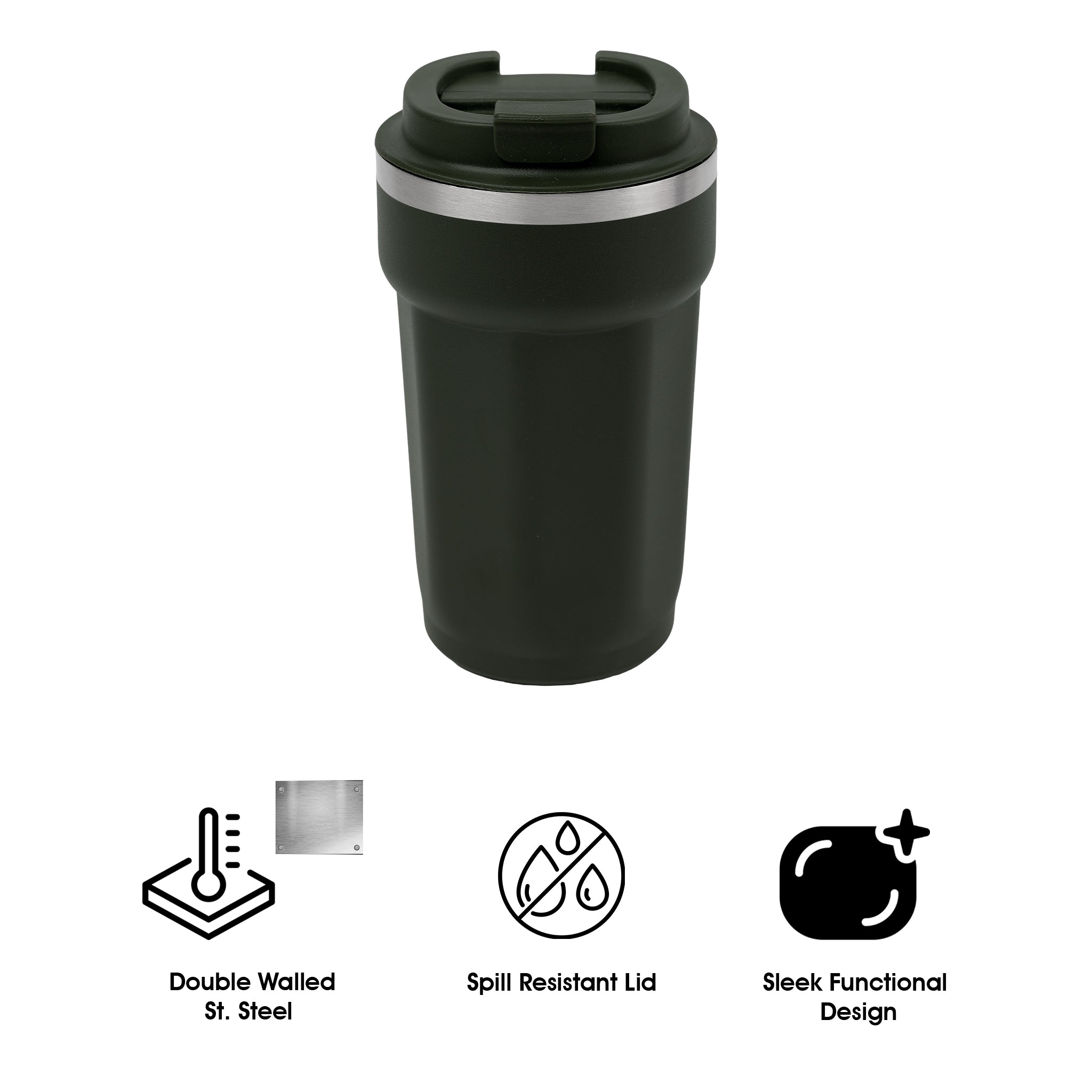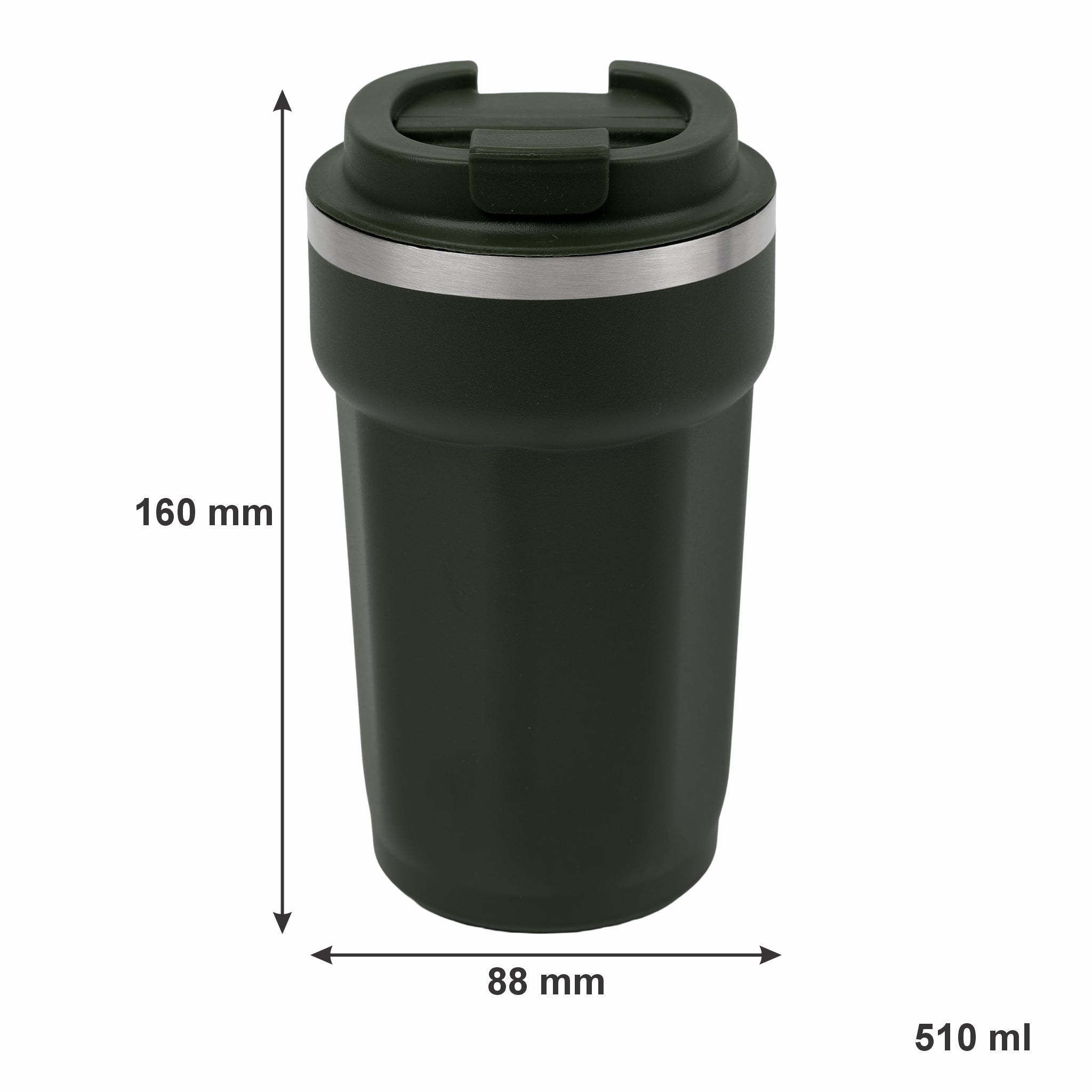 The Regent Double Wall Stainless Steel Travel Mug in organic sage green holds 510ml of your favourite beverage, keeping it hot or cold for hours thanks to its insulated double-wall design. Crafted from high-quality stainless steel, it offers resistance to impact and corrosion. The secure, spill-resistant lid ensures safe transport, making it ideal for on-the-go use. Its sleek design combines functionality with style, providing a reliable and elegant solution for enjoying hot or cold drinks anywhere.