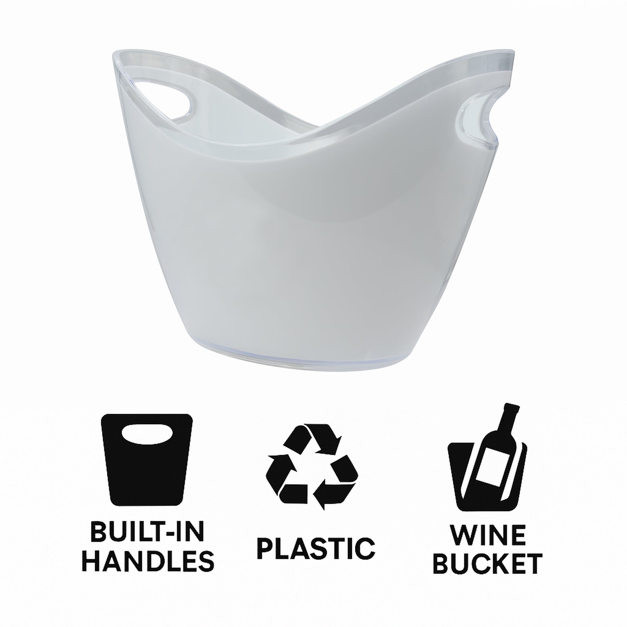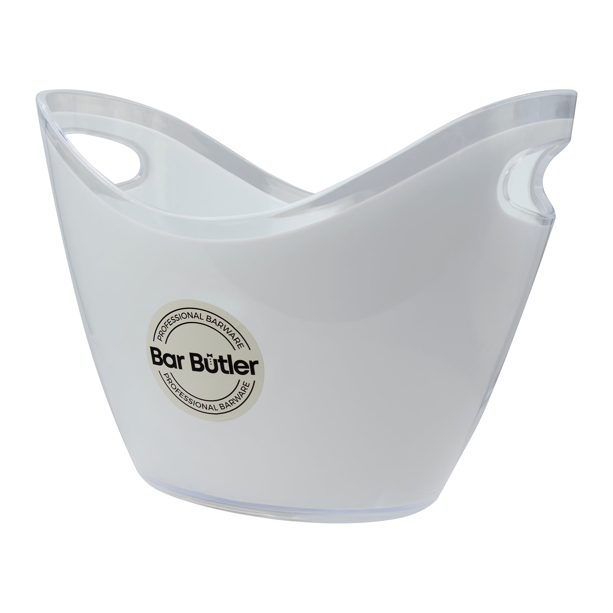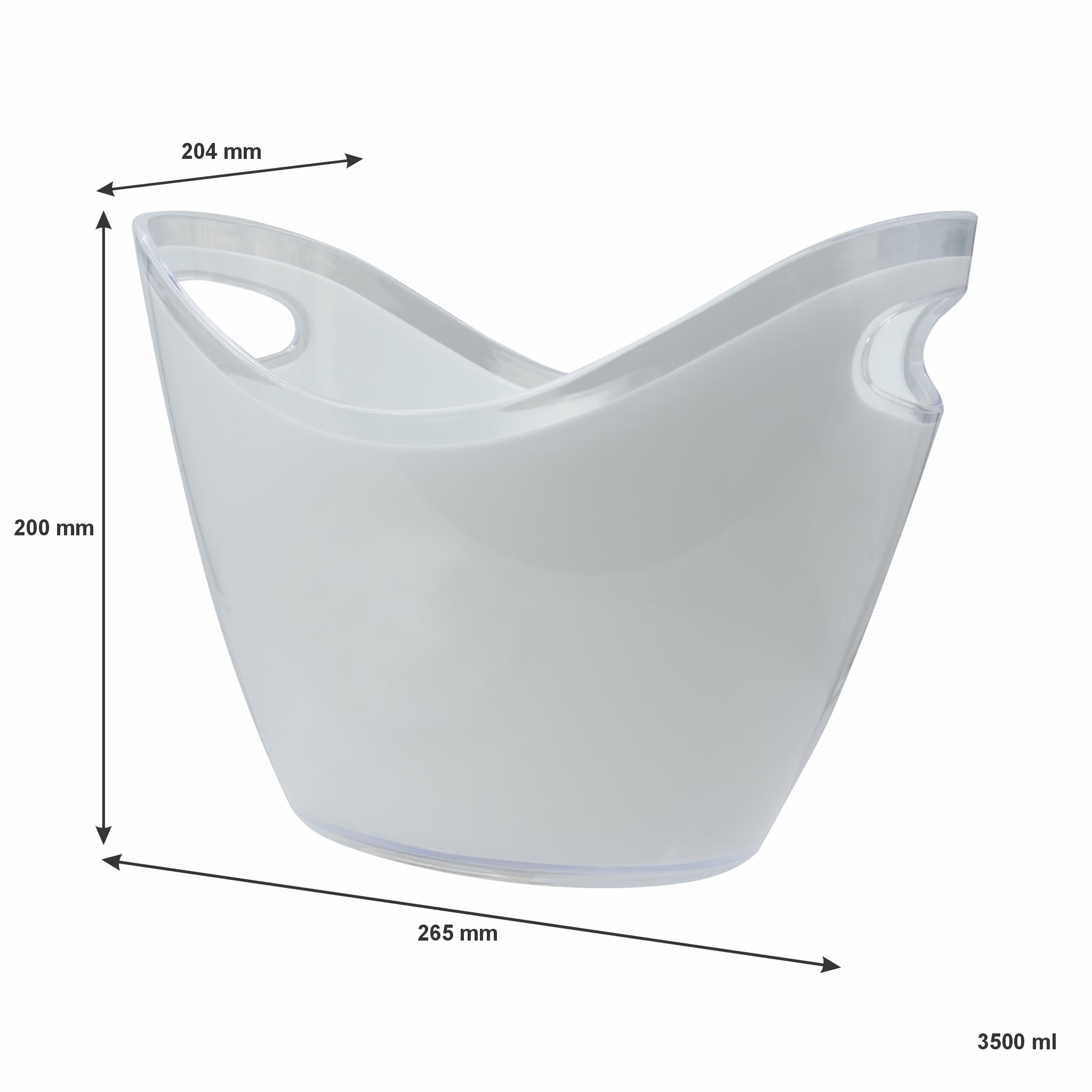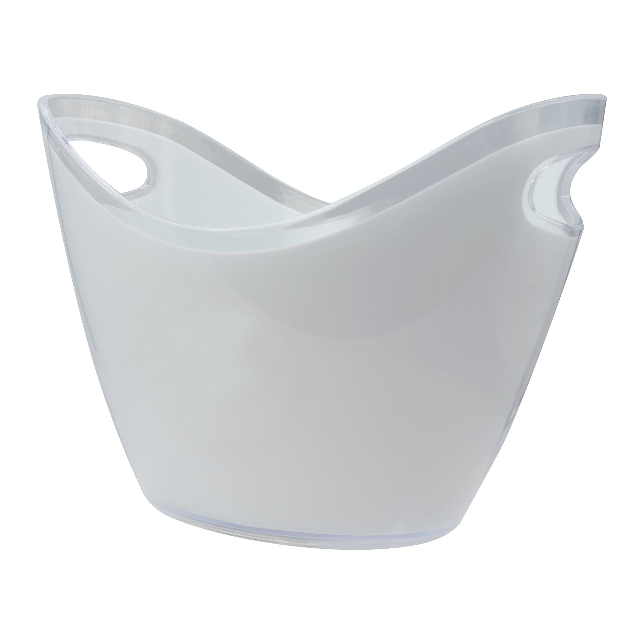 This 3.5lt oval, two-tone white and clear plastic ice bucket is a practical and stylish choice for keeping beverages chilled for longer or to store ice.